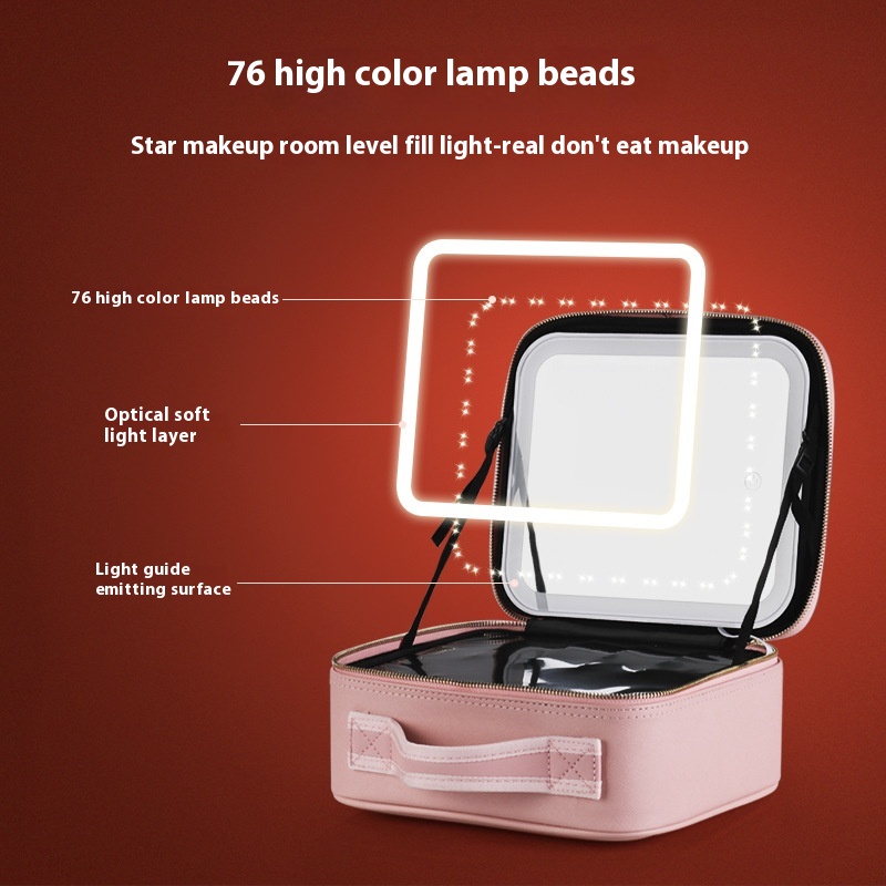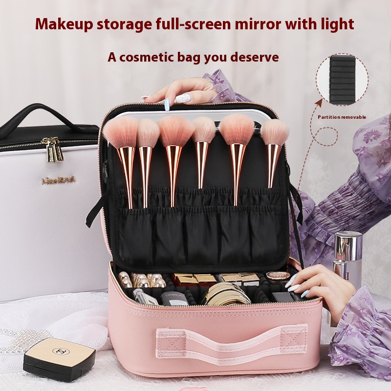 Portable Travel Large Capacity Toiletries Storage Bag With Light And Full Screen Mirror