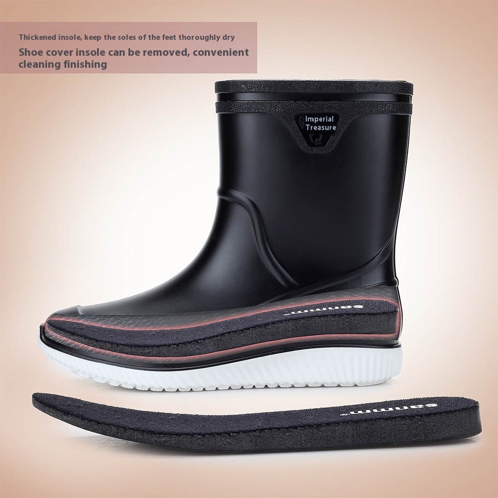 Non-slip Waterproof Rain Boots Men's Mid-tube Rain Boots Thickened Plastic Water Shoes Fishing Kitchen Car Wash Fishing Water Boots