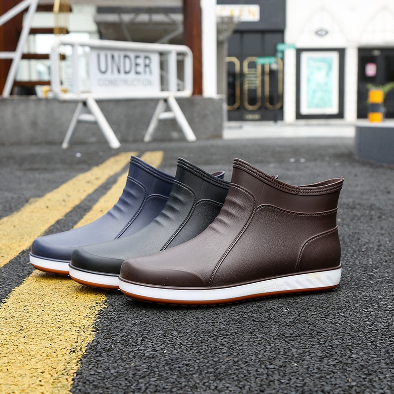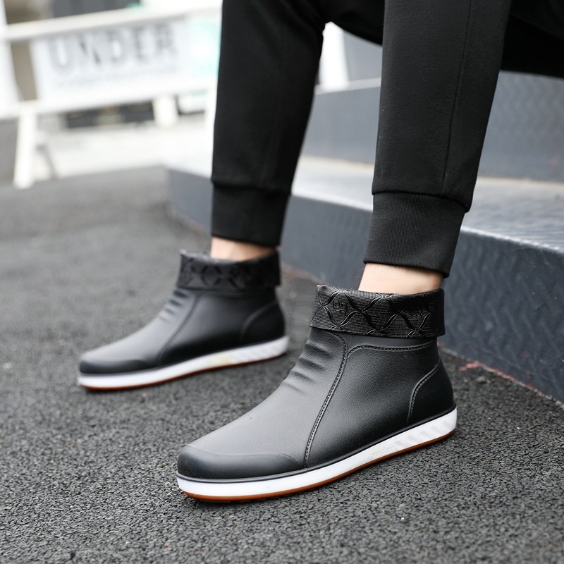 European And American Fashion Men's Rain Boots Mid-tube Rain Boots Non-slip Water Shoes Short Tube Plus Velvet Rubber Shoes Kitchen Car Wash Fishing Work Shoes