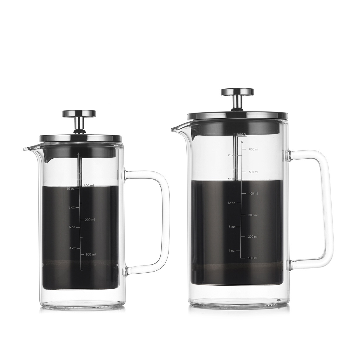 Heat-resistant Straight Double-layer French Press Glass Coffee Pot Household Coffee Utensil French Filter Press Hand Brewing Pot With Scale