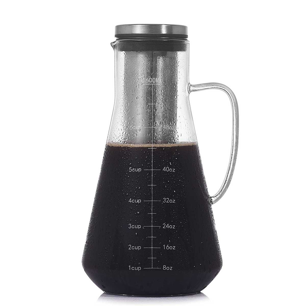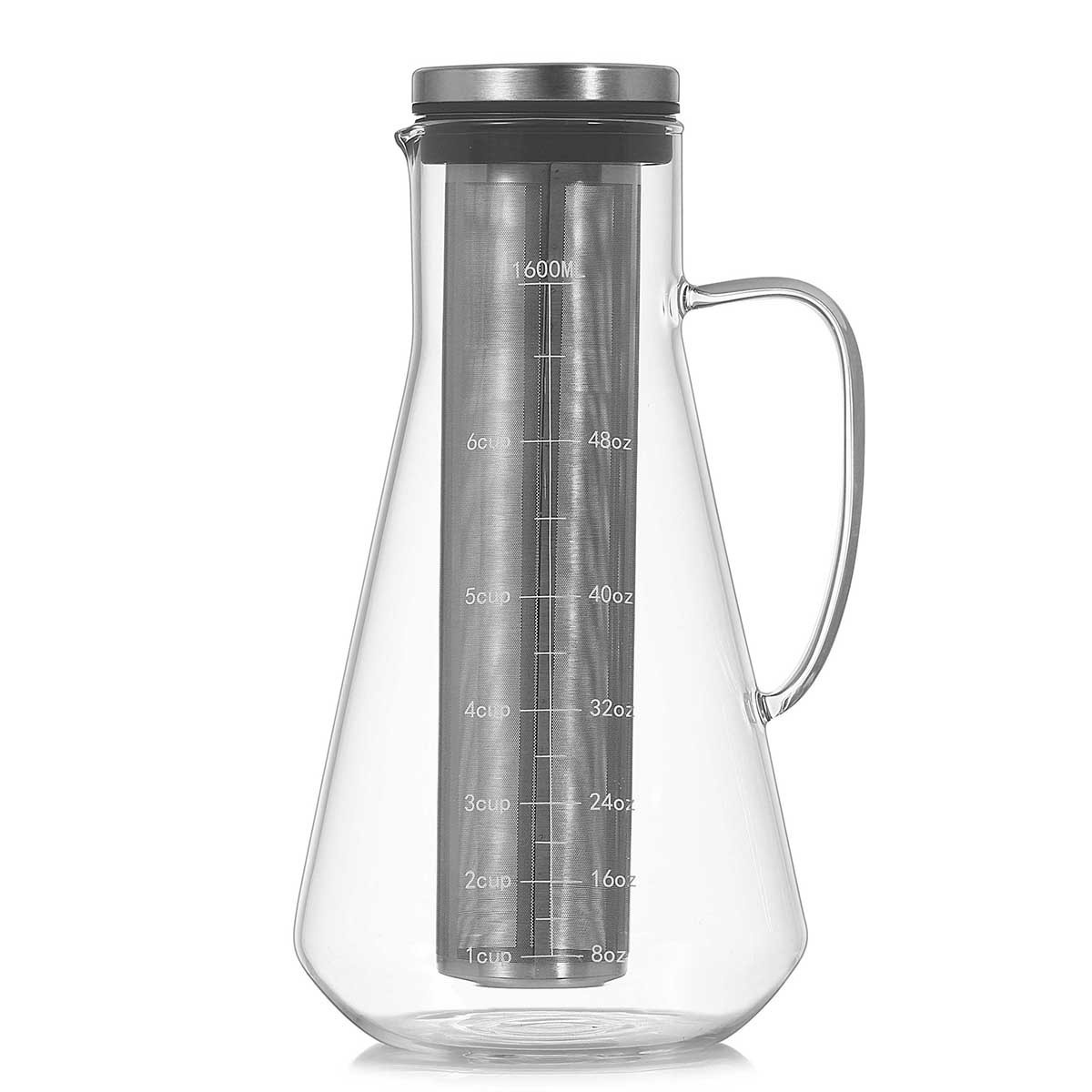 Large Capacity Coffee Pot With Scale,Stainless Steel Filter,High Borosilicate Glass Cold Brew Coffee Pot,Cold Brew Sharing Pot