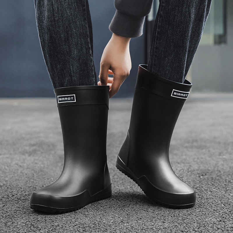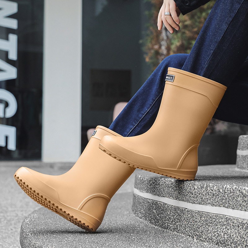 Fashion Rain Boots Mid-tube Men's Anti-slip Wear-resistant Water Shoes Men's Outdoor Sea Fishing Rubber Shoes Waterproof Rain Boots