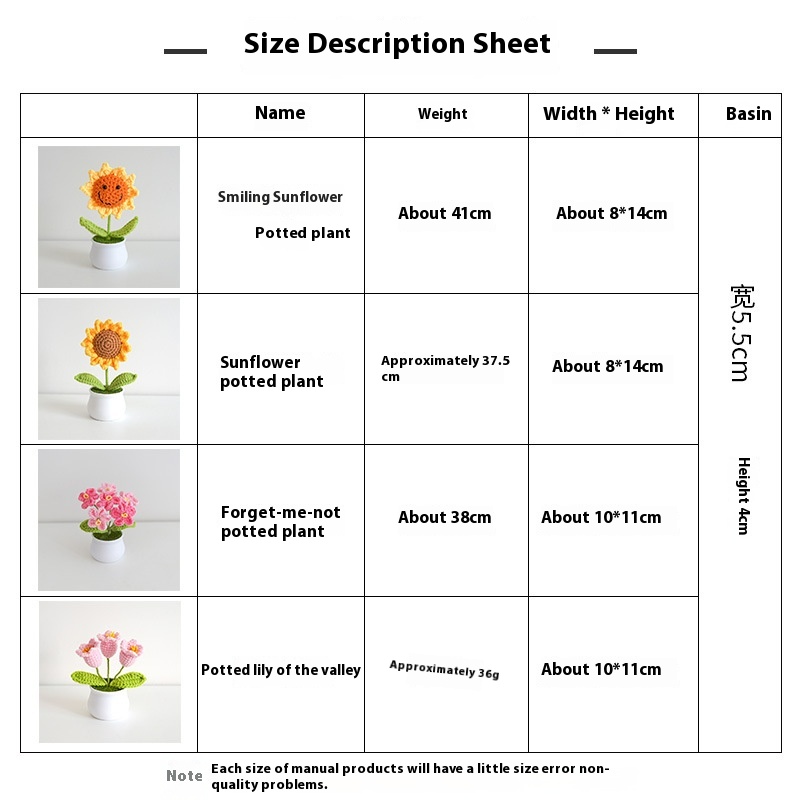 Finished Hand-woven Lily Of The Valley Potted Home Decoration Knitted Artificial Flower Wool Crochet Sunflower Bouquet Gift