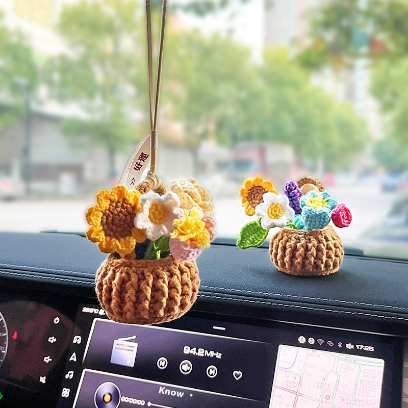 Style Ornaments,Handmade Versatile Car Ornaments,Small Hanging Basket,Office Mini Bouquet Potted Plants,Holiday Gifts