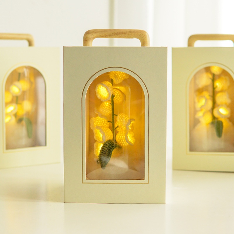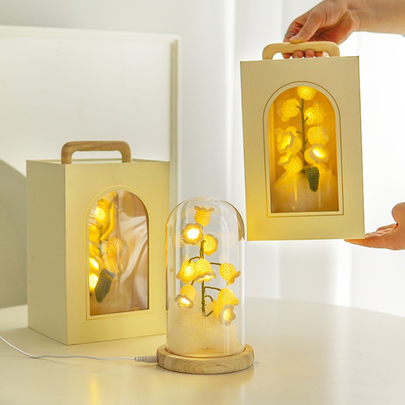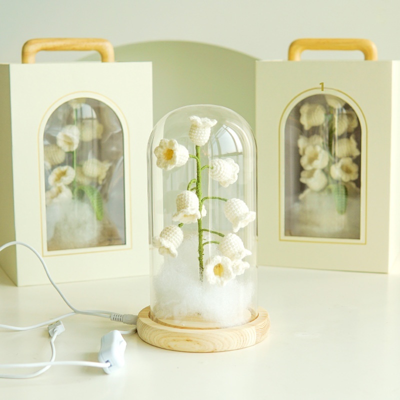 Hand-crocheted Lily Of The Valley Night Light Bouquet Finished Product USBPlug-in Battery Dual-purpose Mother's Day High-end Gift Wool Flower