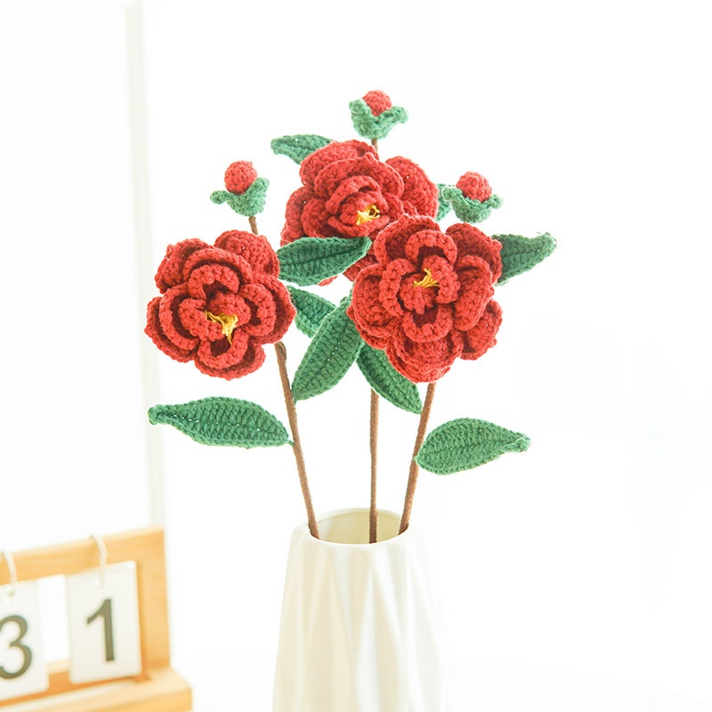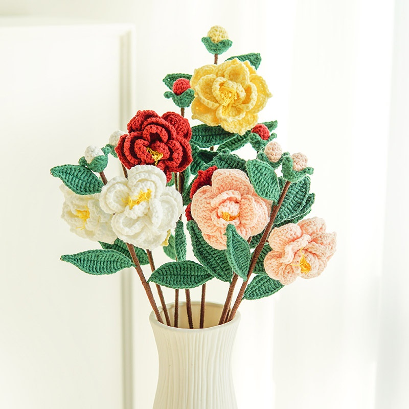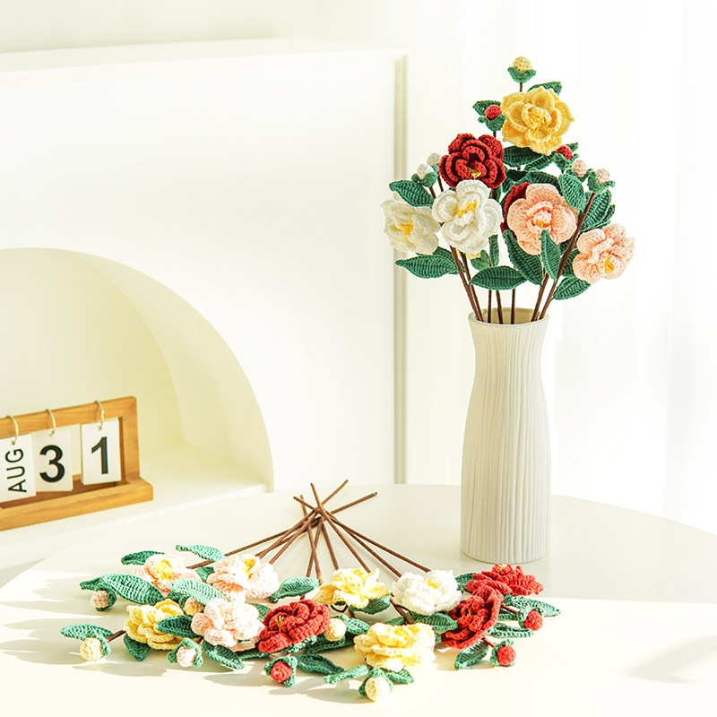 Hand-woven Camellia Bouquet Wool Finished Handmade Gift Immortal Flower Valentine's Day Friend Girlfriend Gift