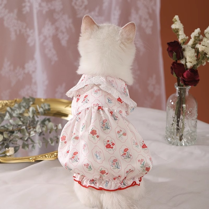 Pet Cat Clothes Summer Breathable Cute Dress Anti-hair Loss Retro Cat Skirt Puppet Summer Thin