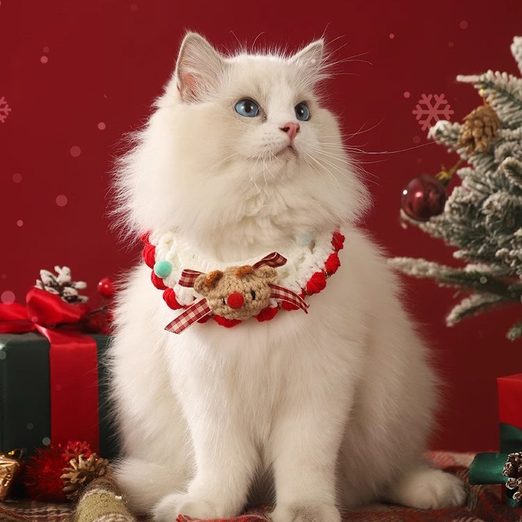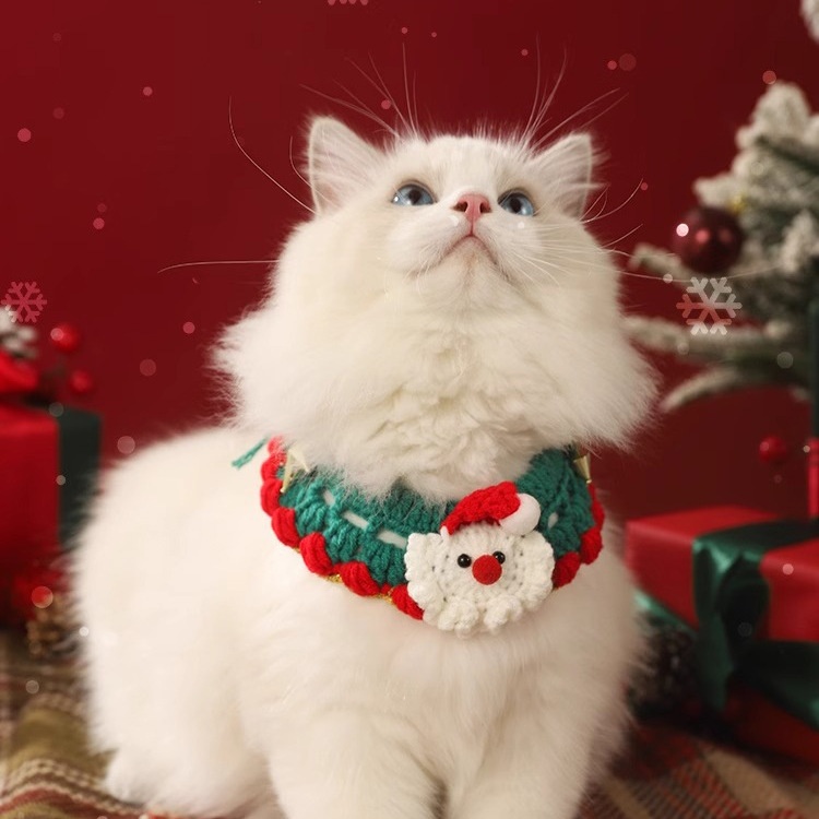 Christmas Cat Collar Scarf Braided Decorative Necklace Bow Tie Bell Dog Pet Winter Accessories Collar