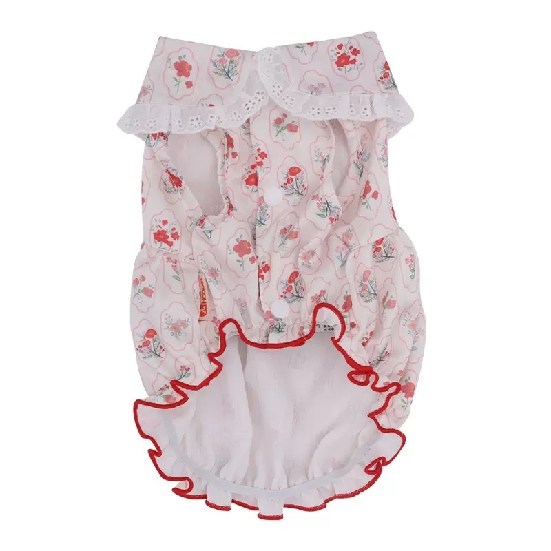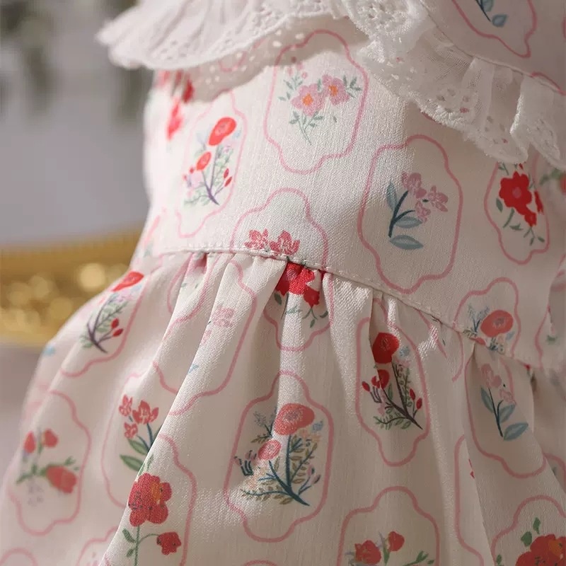 Flowers In Full Bloom Bubble Skirt One-piece Cat Clothes Anti-hair Loss Spring Pet Kitten Spring And Summer Cool Thin Style