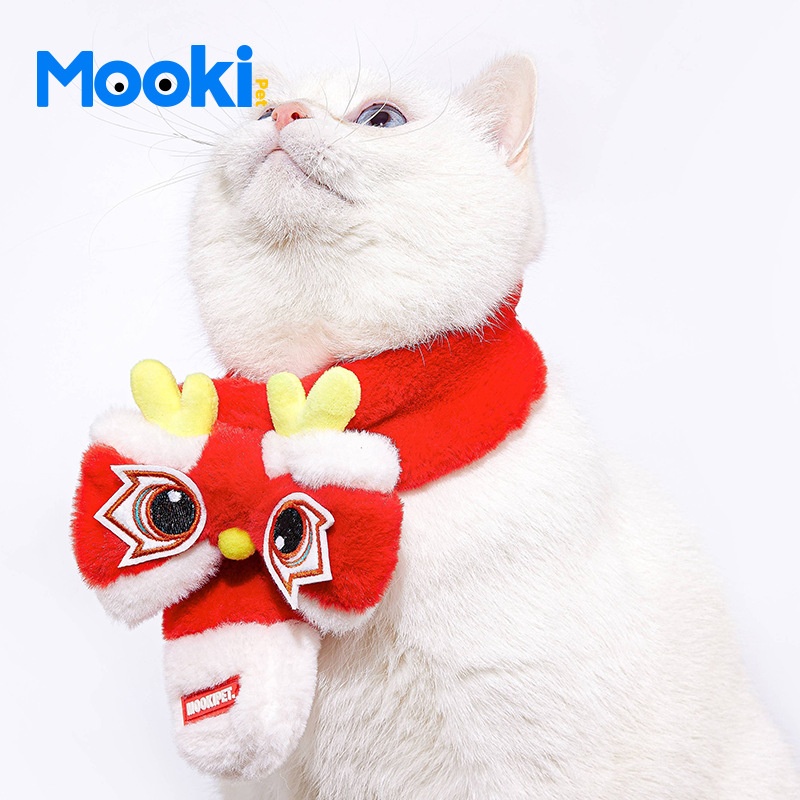 Mookipet Dog Cat Year Scarf Dragon Year Schnauzer Small Dog Bichon Winter Scarf Cute Warm