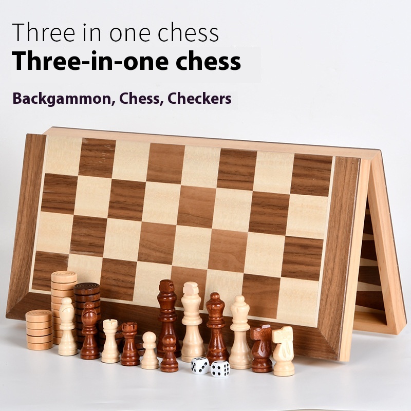 Large Splicing Solid Wood Chess Checkers Backgammon3-in-1 Chess Box Set