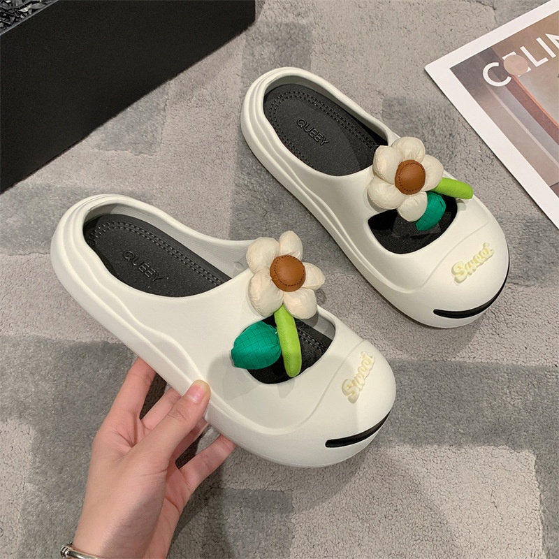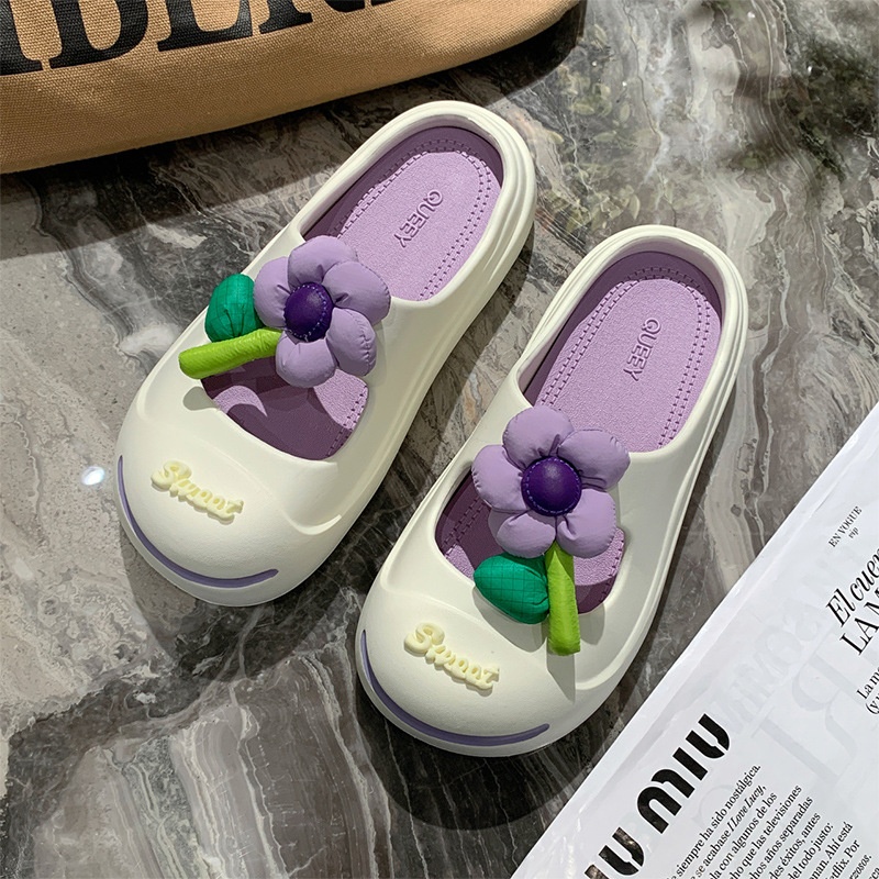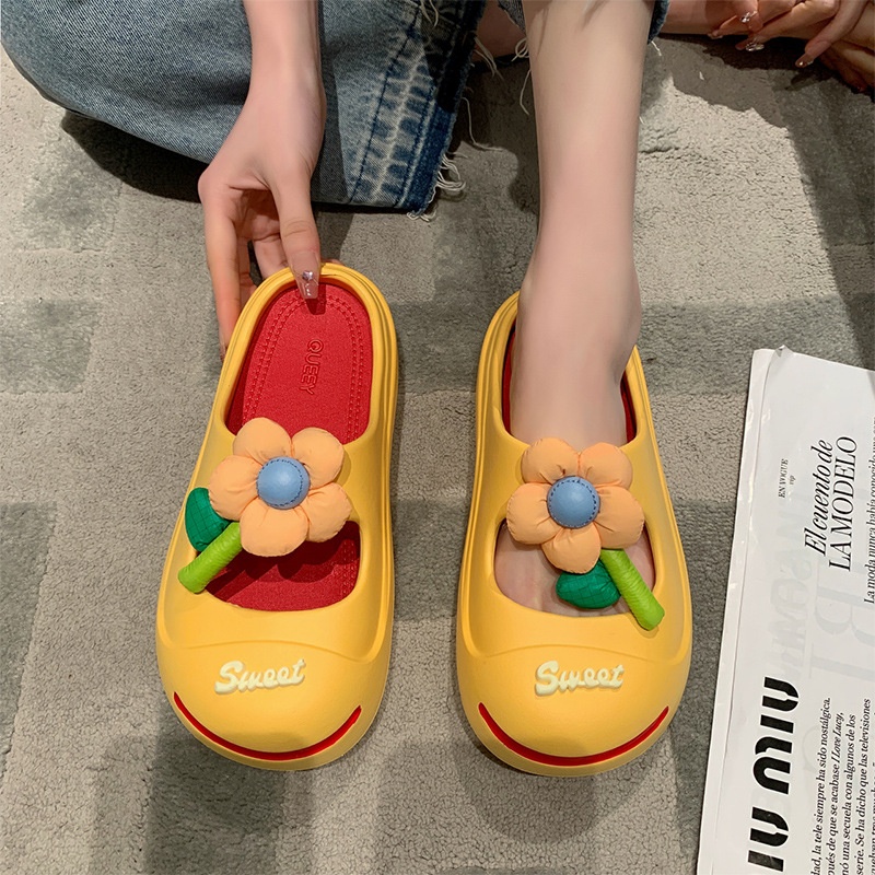 Baotou Hole Shoes With Flowers For Women,Summer Outdoor Wear,Style Cartoon Girls,Soft Bottom,Non-slip Indoor Lazy Sandals