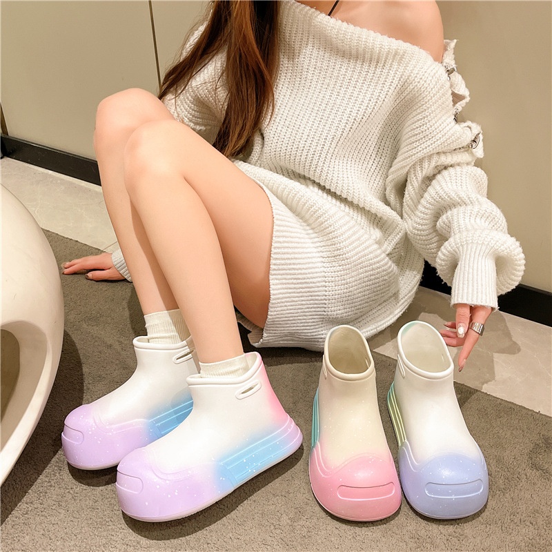 Spring And Summer Waterproof Non-slip Open-mouthed Rainy Day Short-tube Student Women's Gradient Spray Paint Simple Rain Boots Versatile