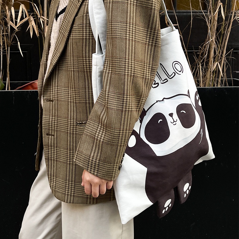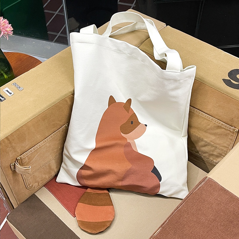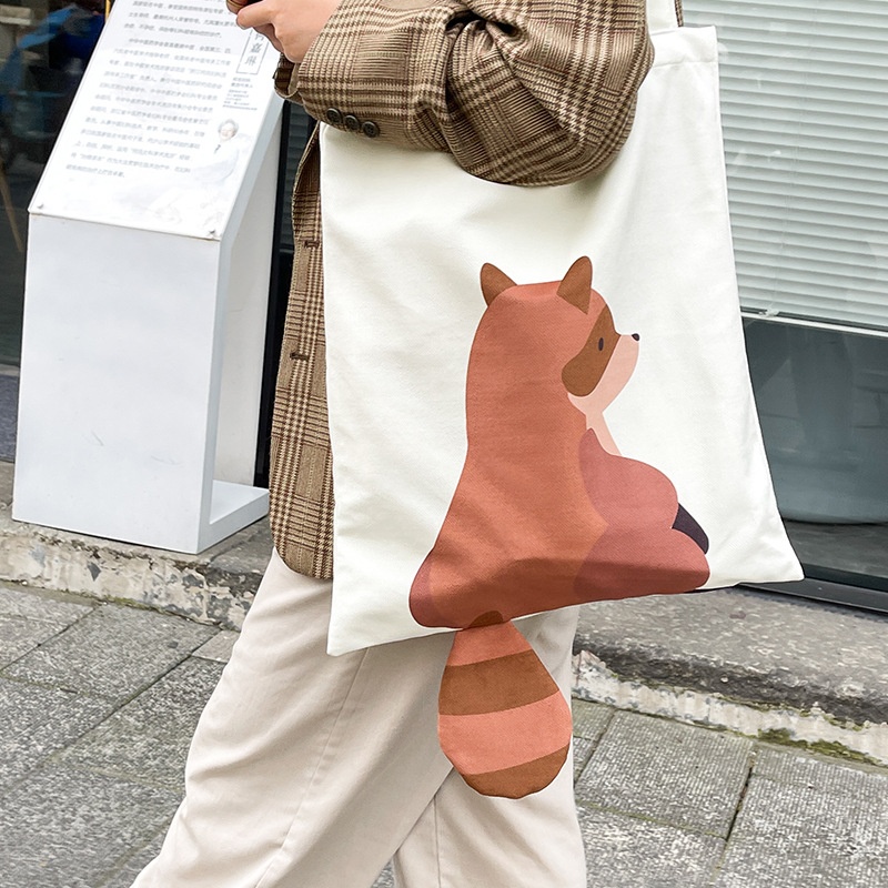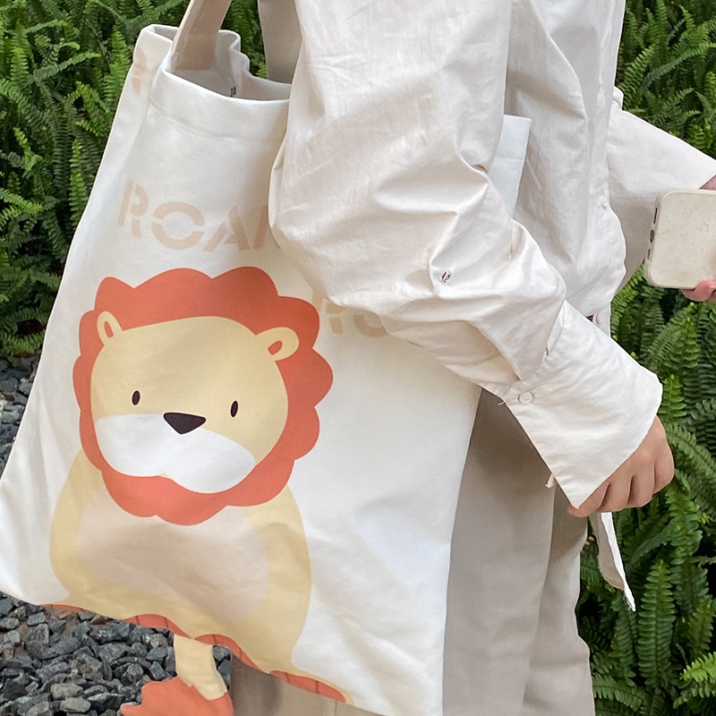 Women's Shopping Canvas Bag Cartoon Cute Handbag Shoulder Bag Large Capacity Can Be Small Batch
