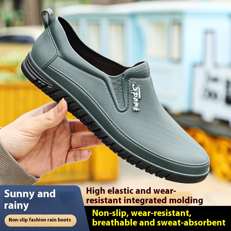 Spring And Summer Adult Non-slip Low-top Rain Boots Men's Fashion Flat-bottom Shallow-mouth Work Shoes Rubber Shoes