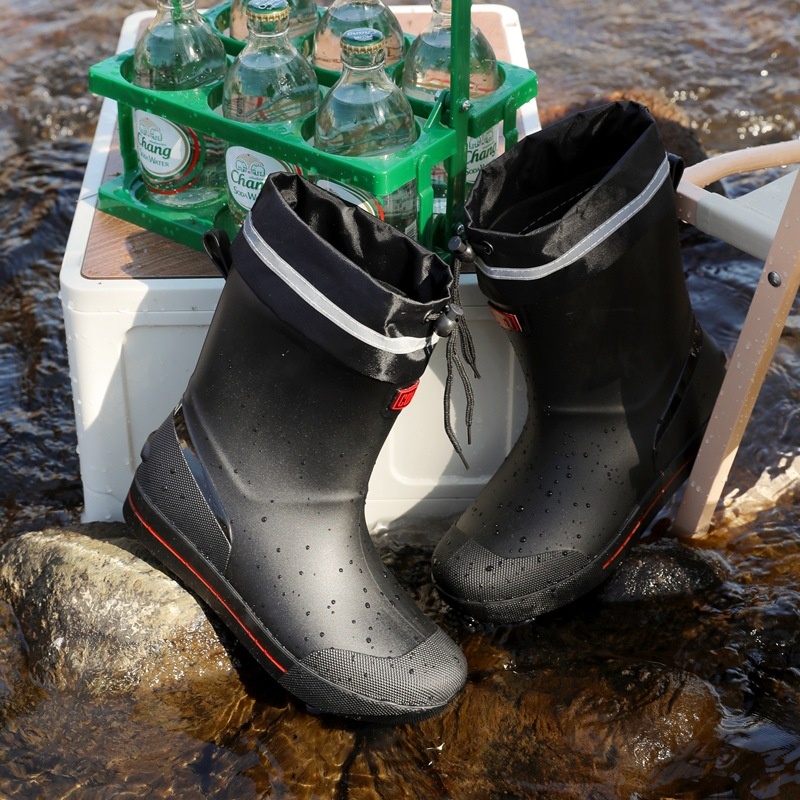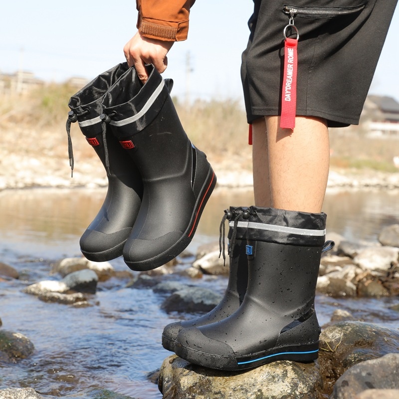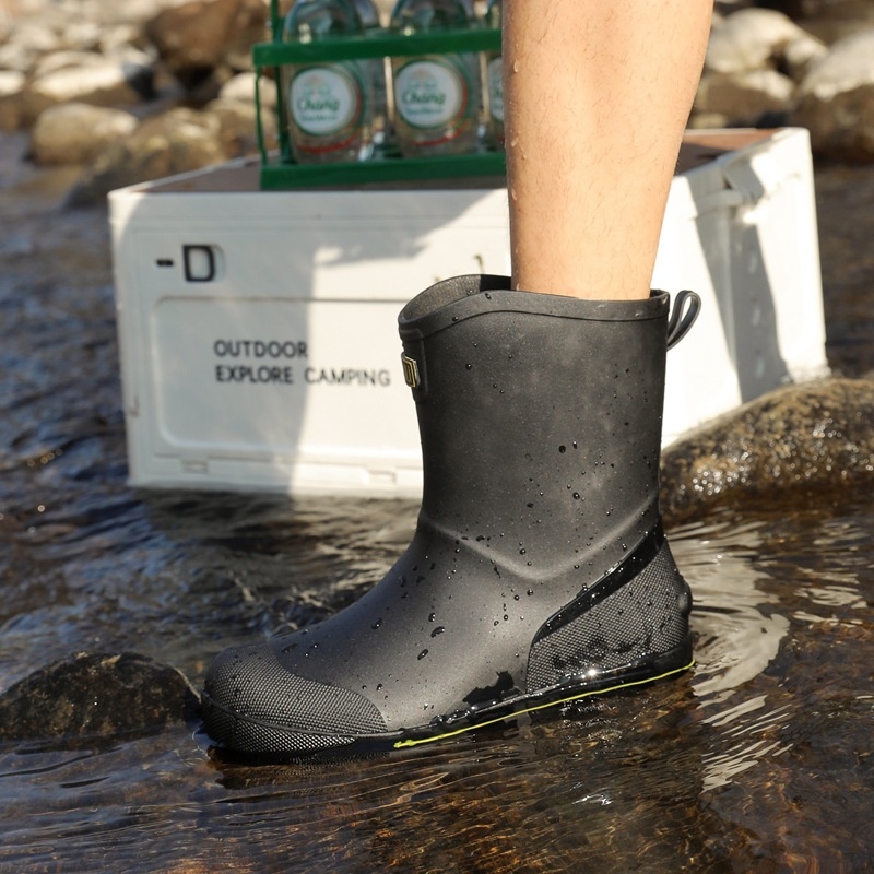 Korean Fashion Foreign Trade Flat-soled Plus Velvet Men's Rain Boots Mid-tube Non-slip Waterproof Fishing Shoes Construction Site Kitchen Water Shoes Men