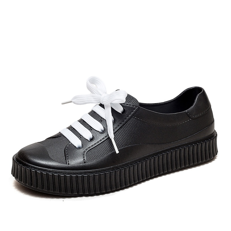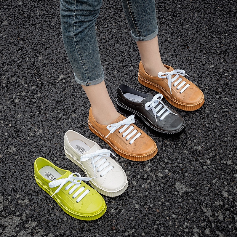 Charm Shark Summer Fashion Daily Lace-up White Shoes Student Rain Boots Casual Solid Color Low-top Water Shoes Women's Rain Boots
