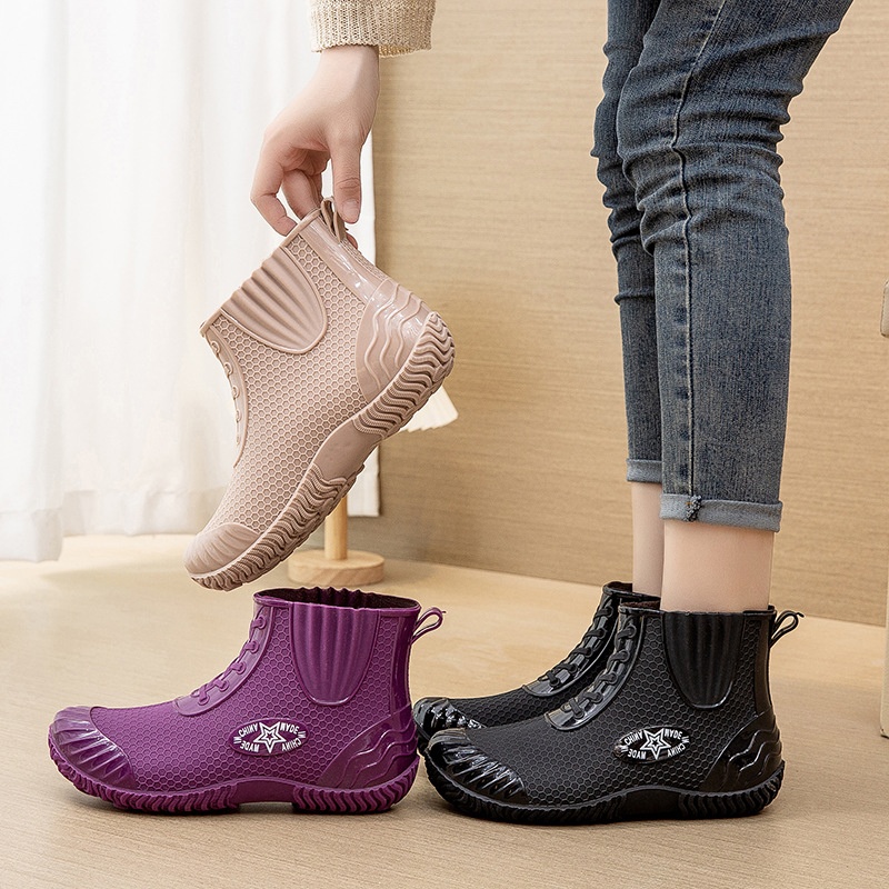 Foreign Trade Fashion Rain Boots Ladies Summer Low-top Short-tube Rain Boots Car Wash Overshoes Rubber Shoes Spring And Autumn Waterproof Shoes