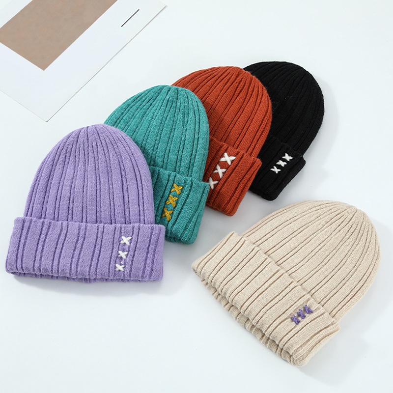 Candy Color Handmade Design All-match Autumn And Winter Personality Men And Women Solid Color Cross-fork Wool Knitted Hat Cold Hat