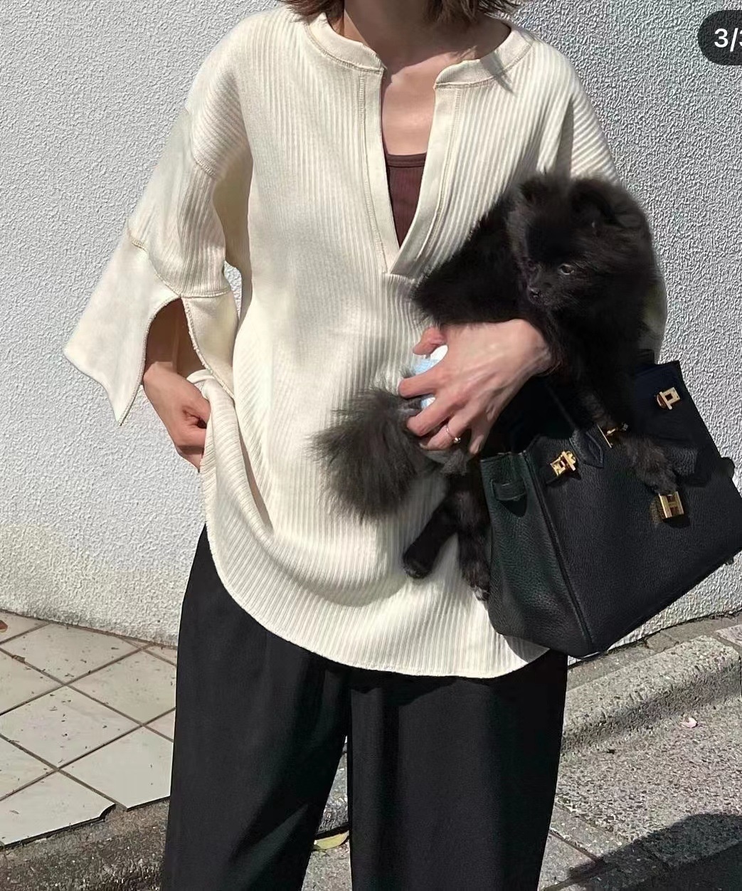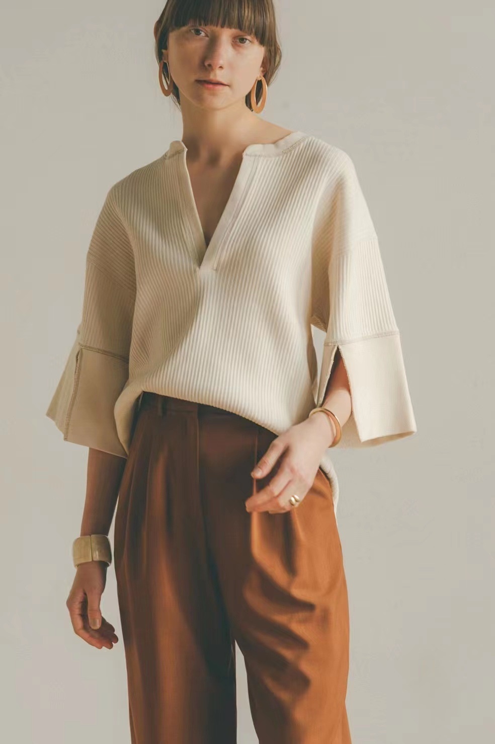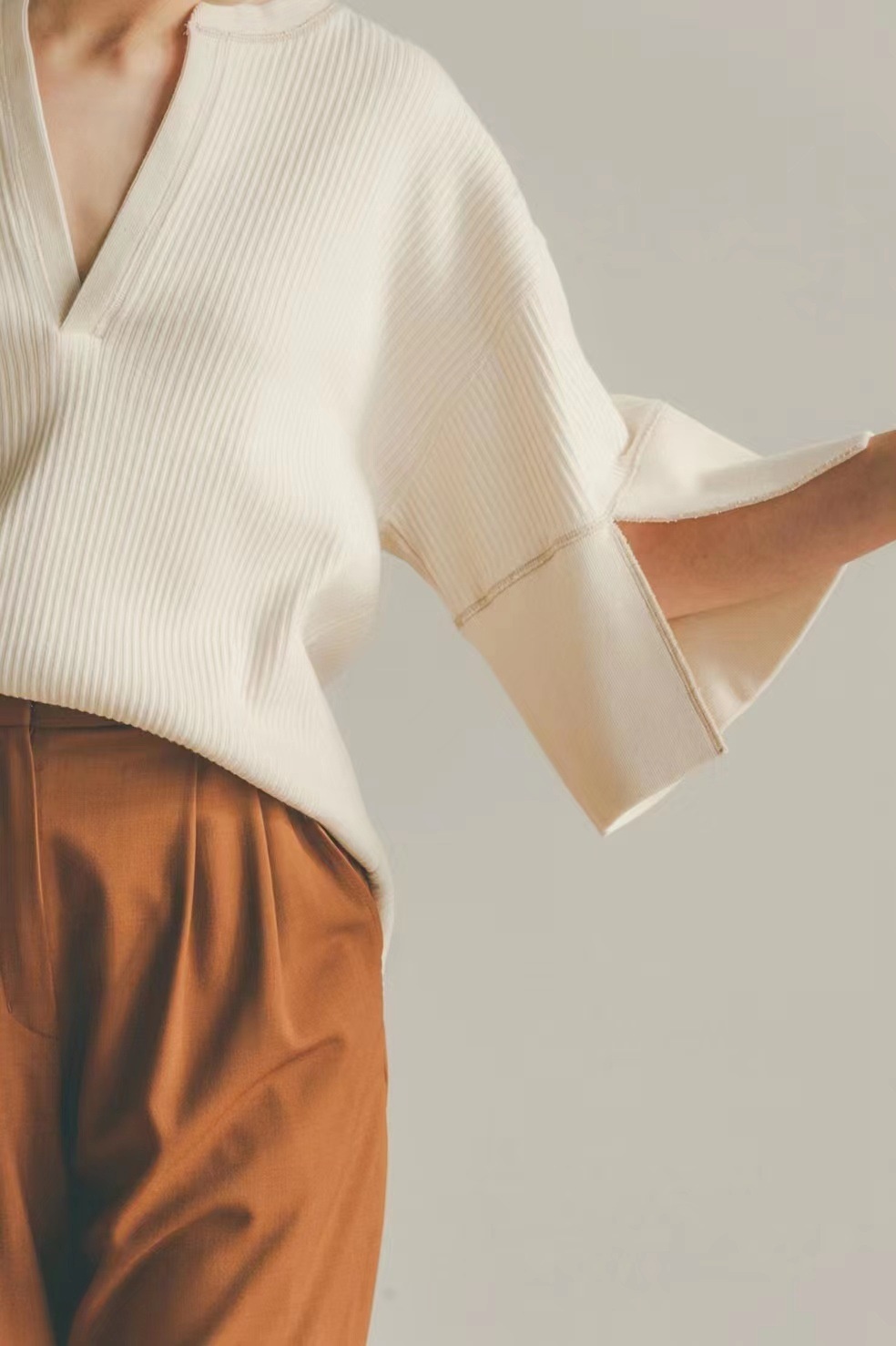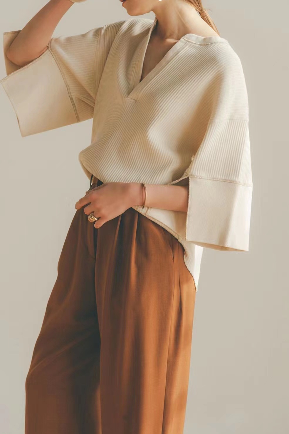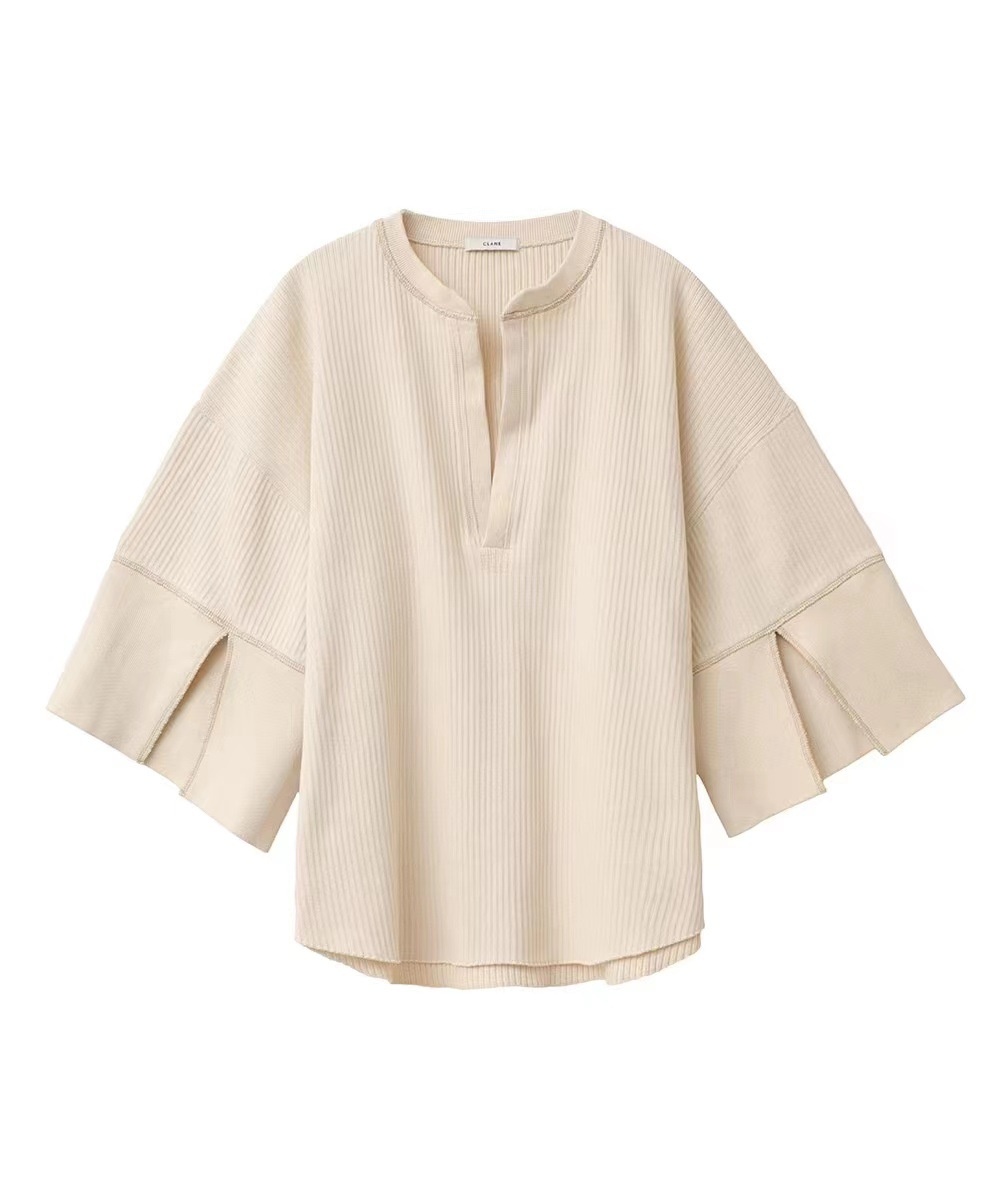 C L A N E Summer Loose High-end Design Top Cream White Three-quarter Sleeve V-neck Temperament Short Coat