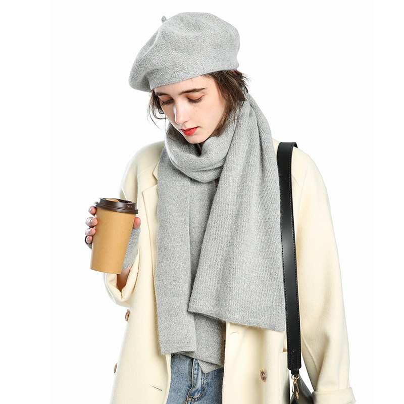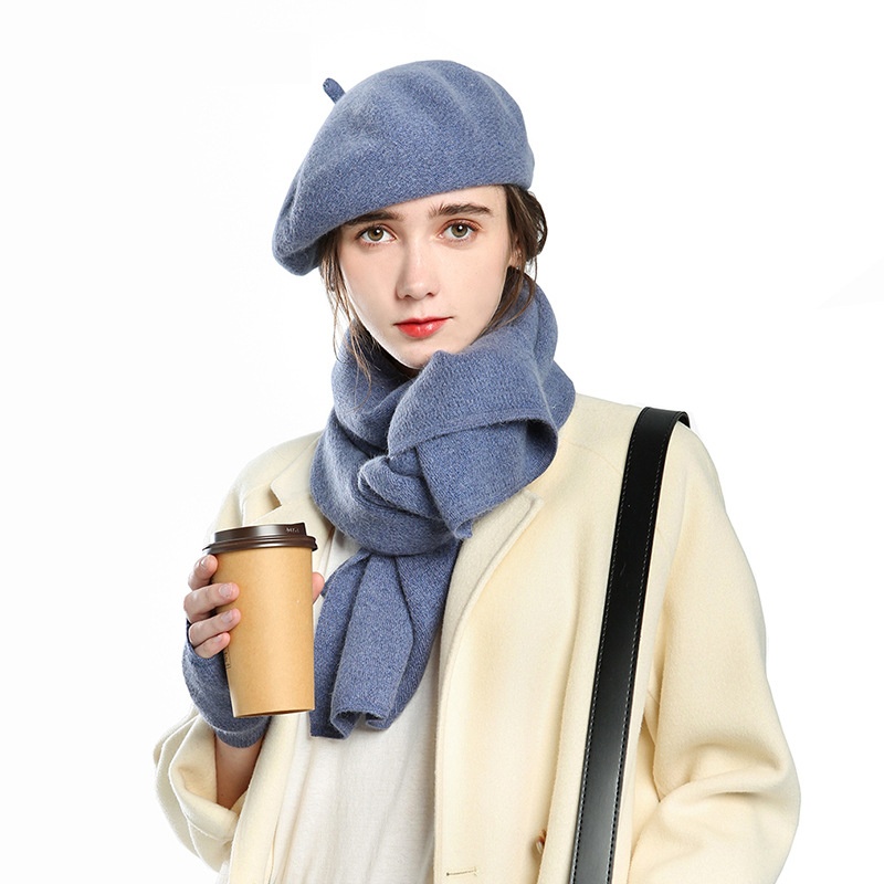 Beret Autumn Solid Wool Painter Hat Women's Hat Gloves Scarf Three-piece Set