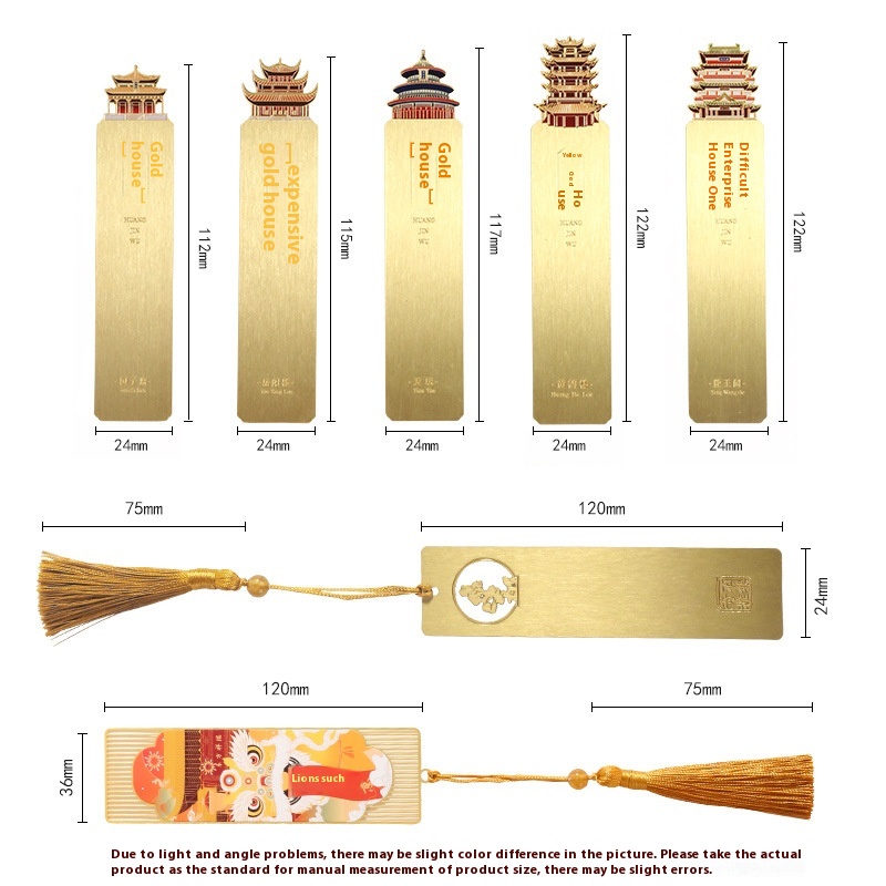 Text Building National Metal Bookmark Brass Ruler Bookmark Brushed School Anniversary Graduation Commemorative Gift Box
