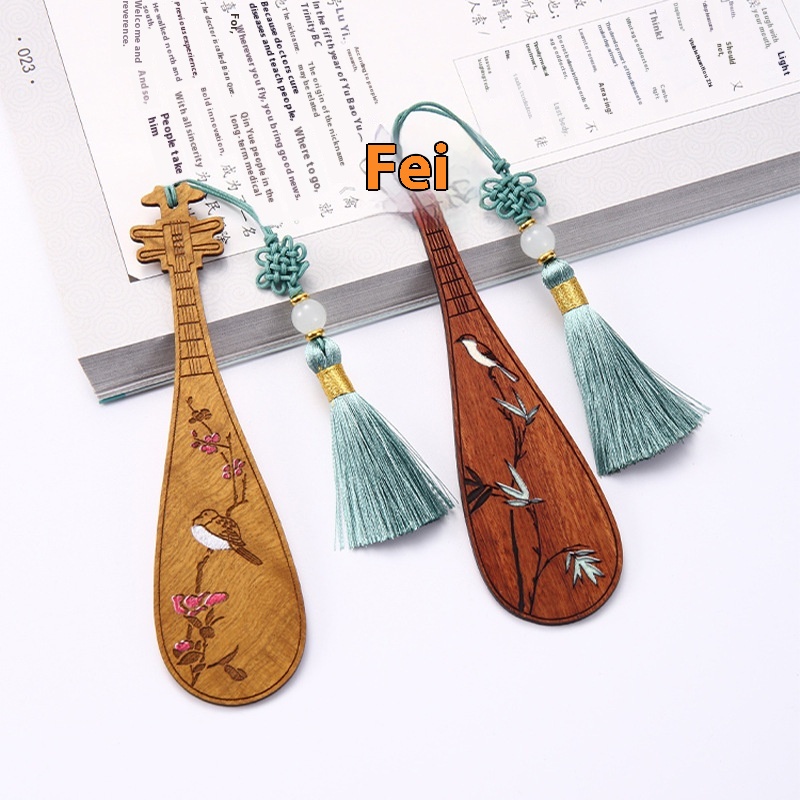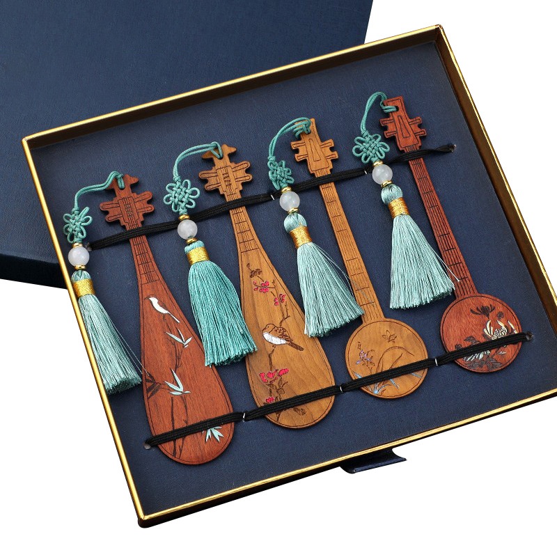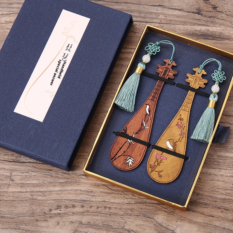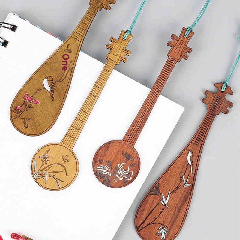Wooden Chinese Style Mahogany Teacher's Day Gift Creative Ancient Style Classical Musicaltrument Cultural And Creative Painted Pipa Wooden Bookmark