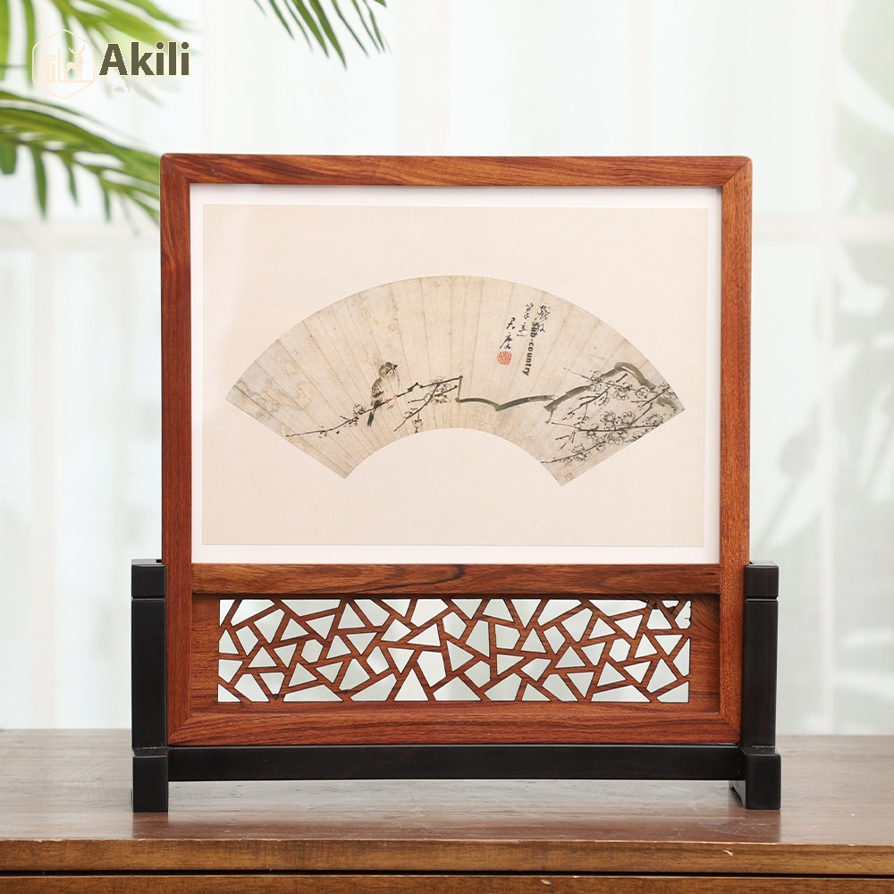 Redwood Screen Table Screen Characteristic Cultural And Creative Study Light Luxury Photo Mounting Chinese Retro Small Screen Ornaments Painting