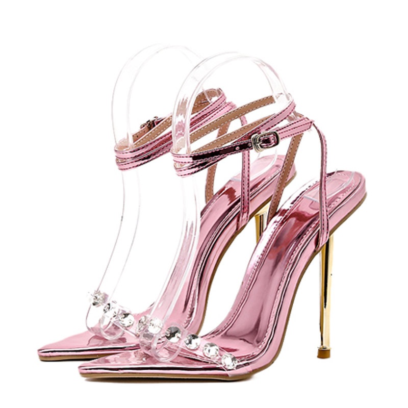 Europe And The United States Rhinestone Cross Thin Strap High Heel Strap Women's Sandals