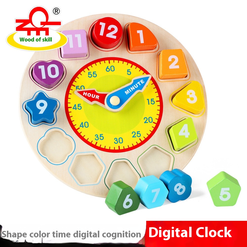 Multifunctional Montessori Teaching Aids Digital Clock Wooden Shape Cognitive Learning Alarm Clock Early Education Educational Children's Toys