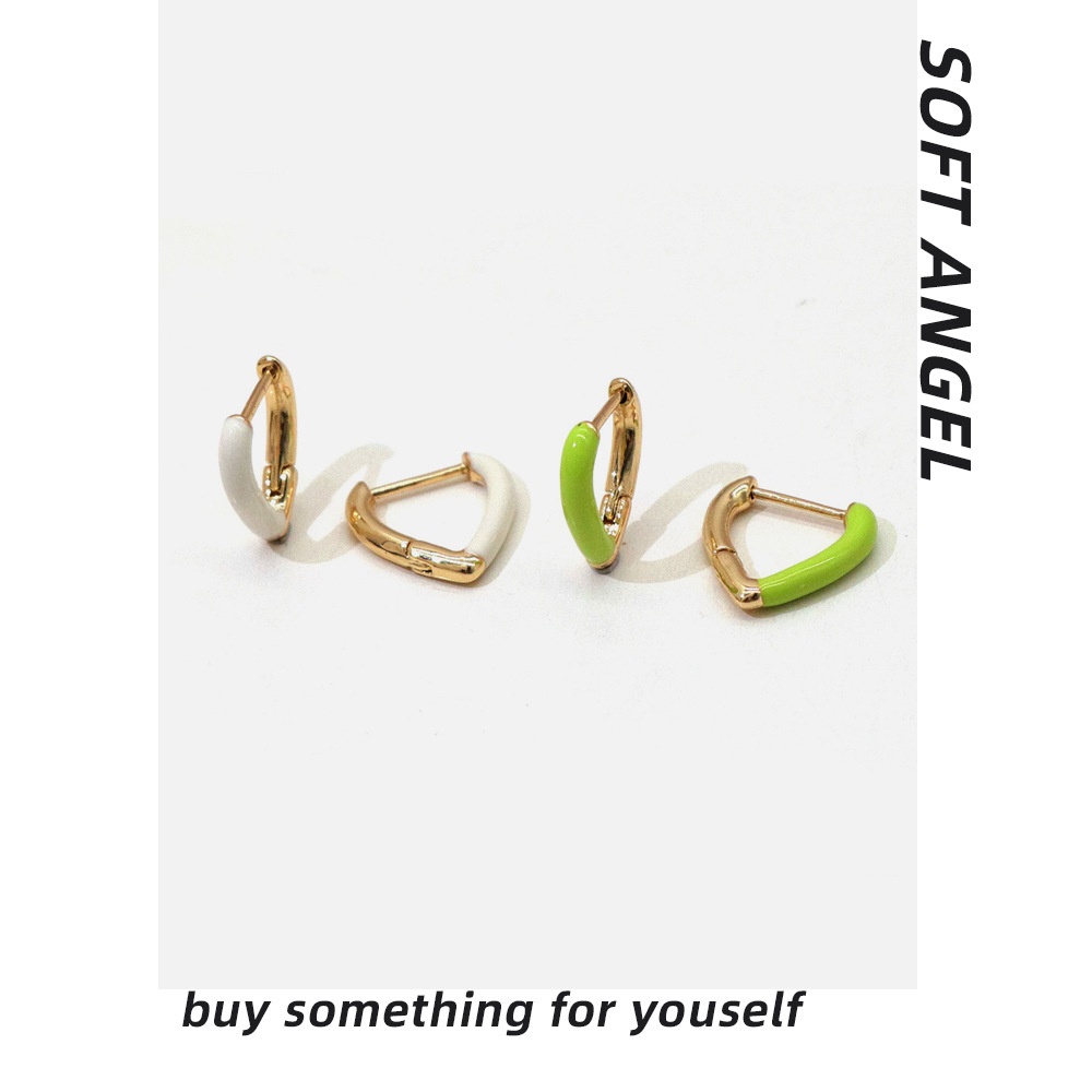 24 Hong Kong Style Candy Color Enamel Geometric Small Triangle Earrings Net Celebrity Personality Small Fresh Girl Heart Earrings