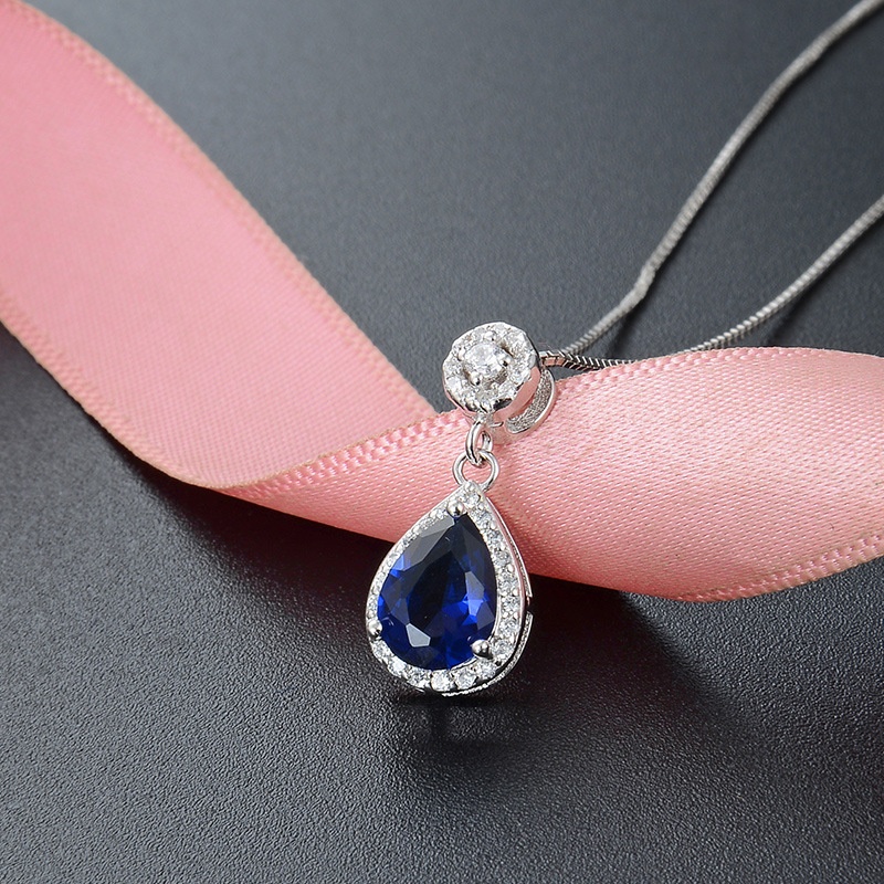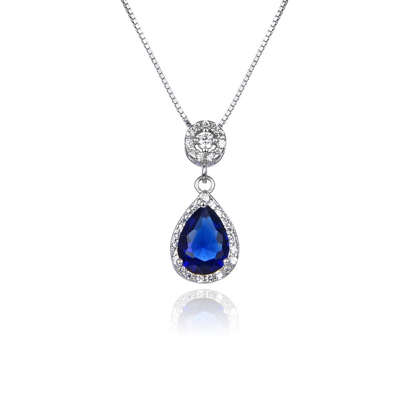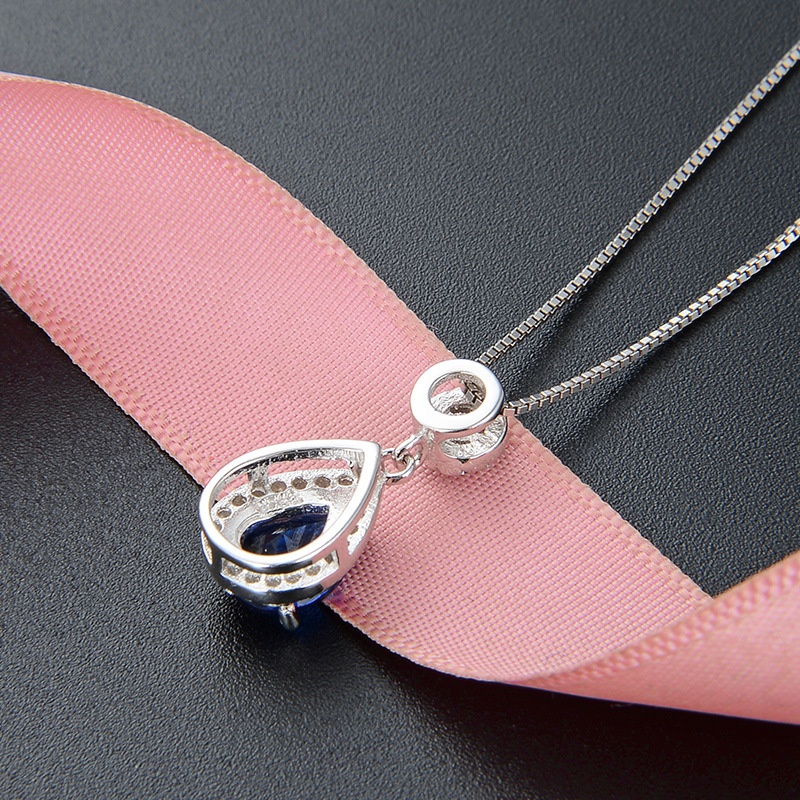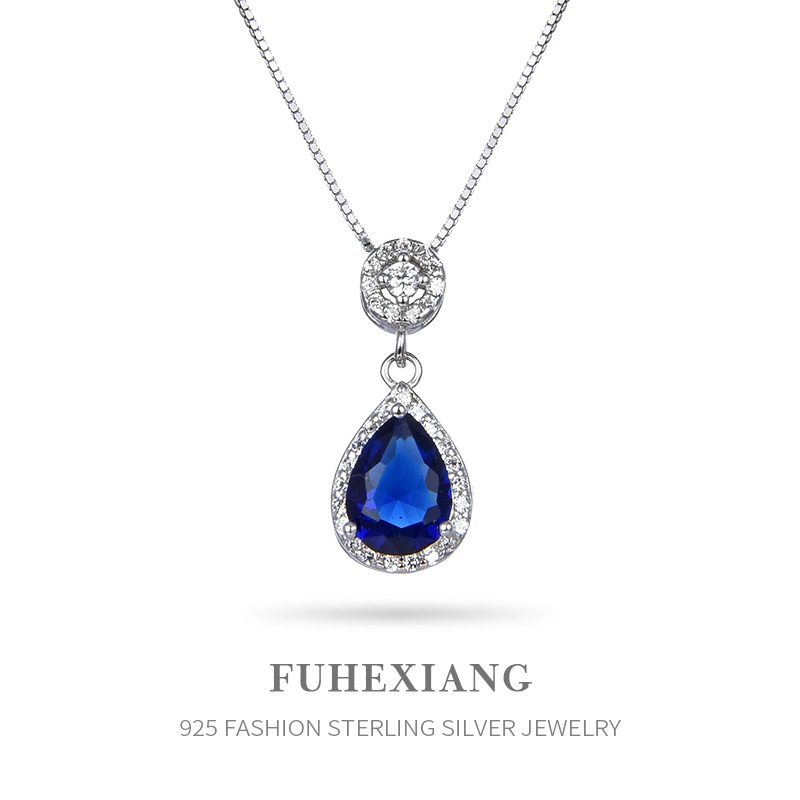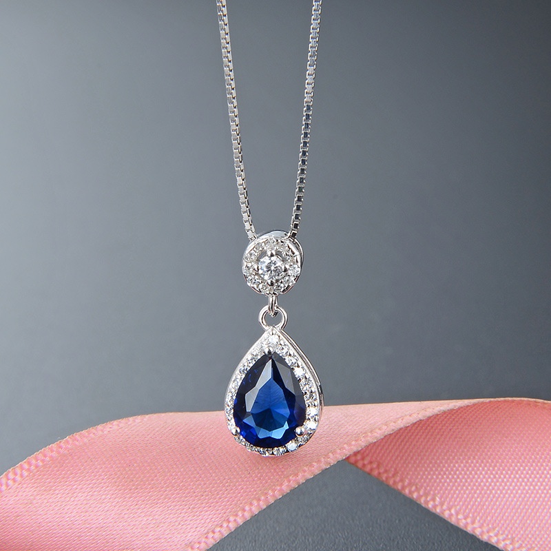 Temu Jewelry Distribution Retro Temperament Sapphire Pendant S925 Silver Necklace Ladies Plain Chain Aristocratic Accessories