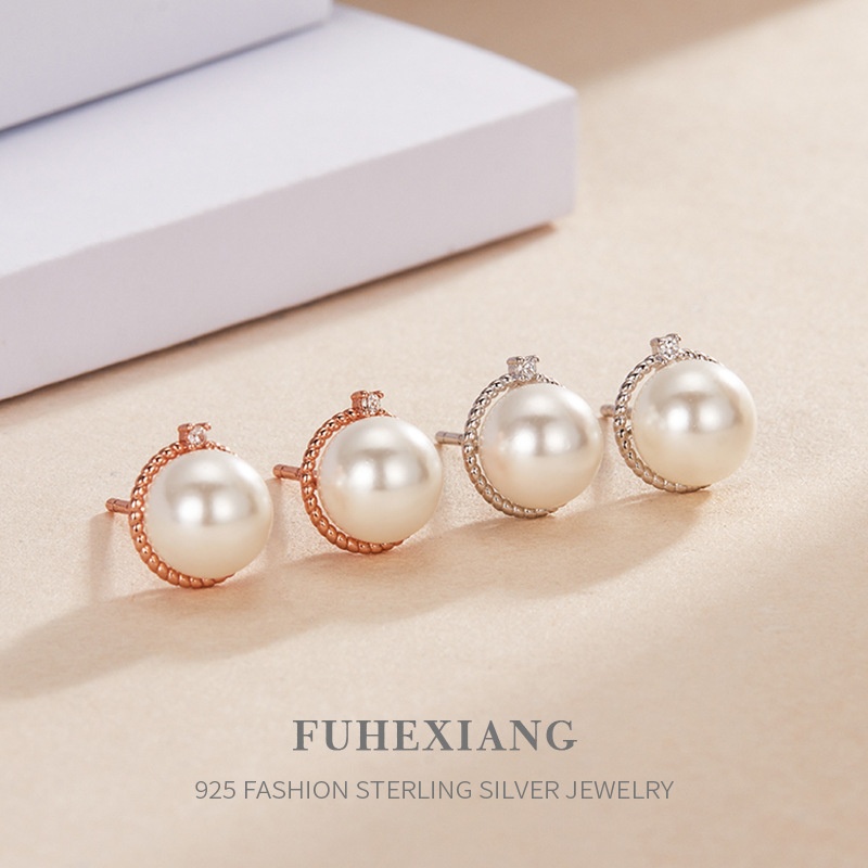 TEMUE-commerce Pearl Earrings One Piece Dropshipping S925 Sterling Silver Round Light Luxury Retro Ladies Pearl Earrings