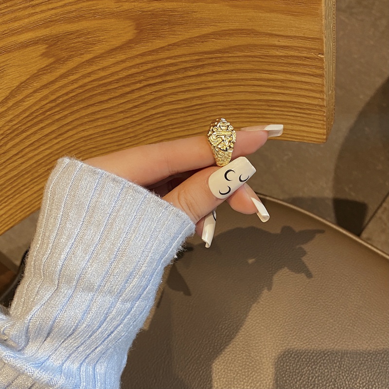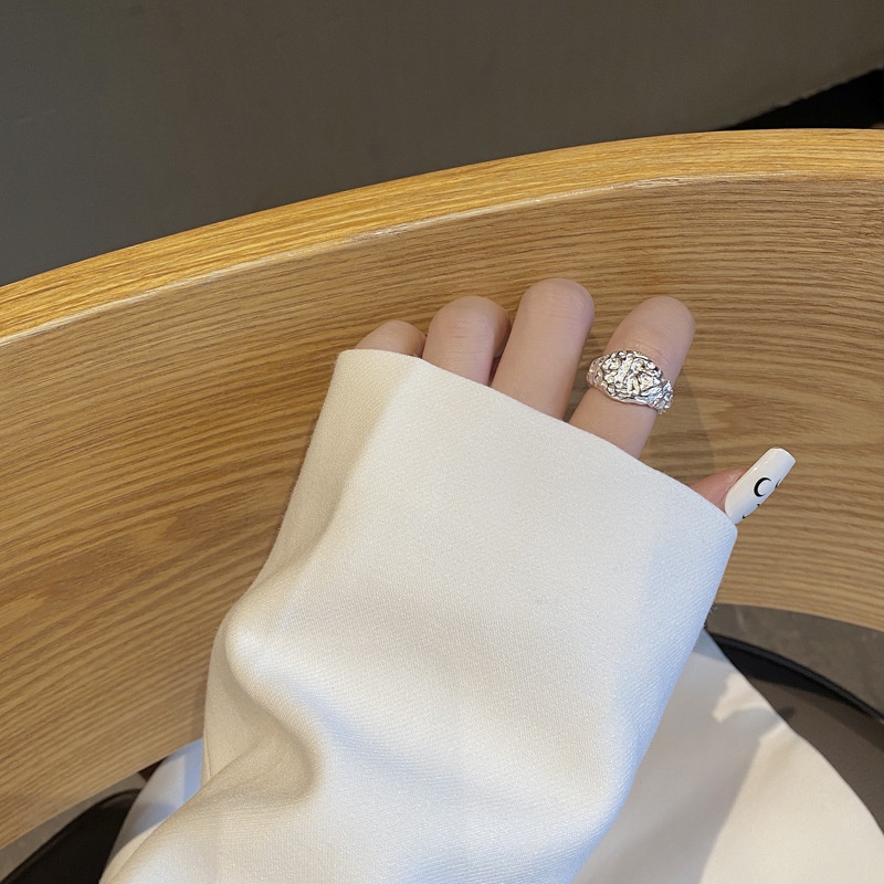 Yinhan Pavilion South Korea Dadongmen Niche Design S925 Sterling Silver Geometric Irregular Hammer Texture Ring