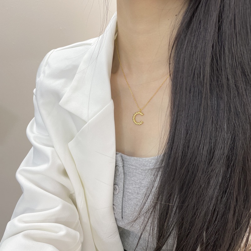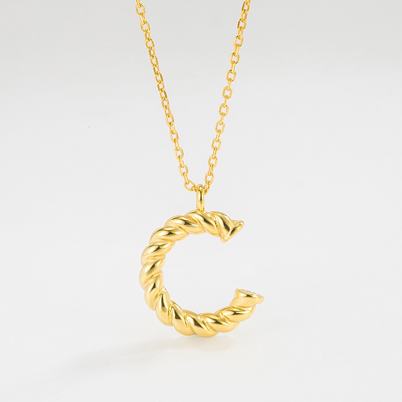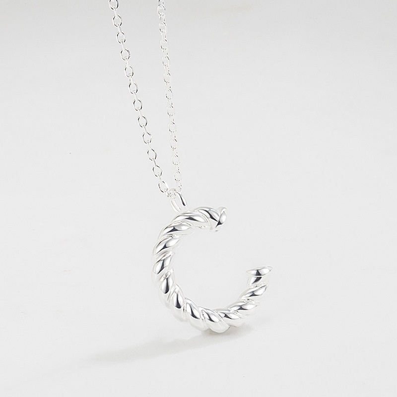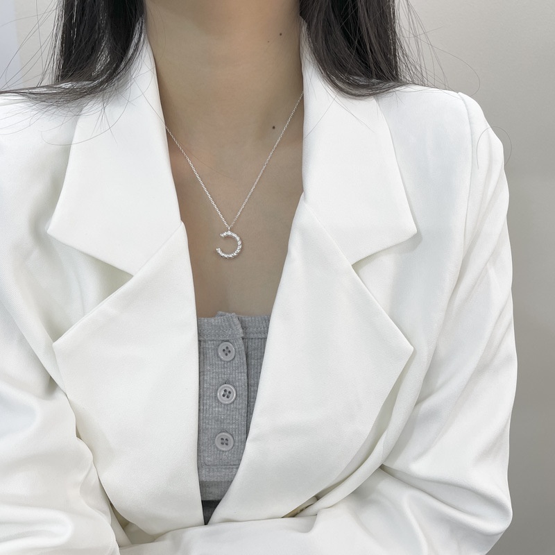 Korean Version925 Sterling Silver C-shaped Letter Necklace Female Clavicle Chain Niche Design Network Celebrity All-match Hong Kong Style Jewelry