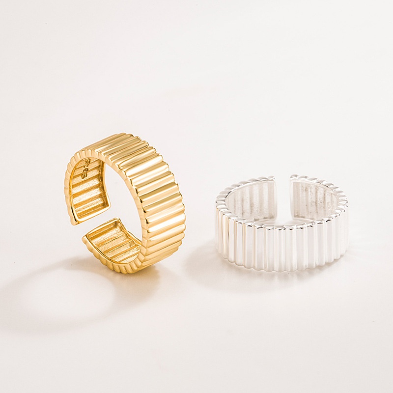 South Korea Dongdaemun S925 Sterling Silver French Fashionable Gear Ring Female Niche Design Simple Ring