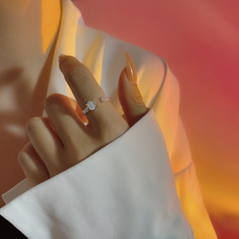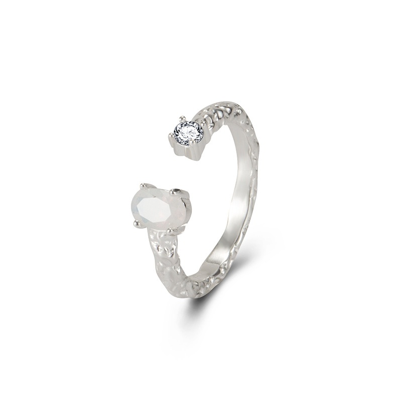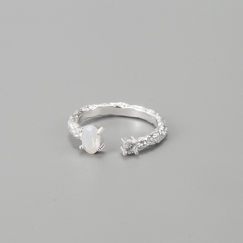Tin Foil Texture925 Pure Silver Temperament Simple Chic Ring Opal Cold Style Open Ring