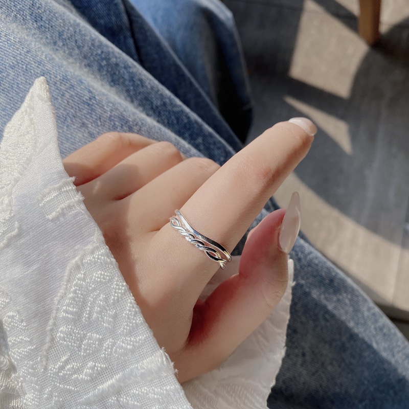 Niche Design Minimalist Double-layer Open Ring S925 Sterling Silver Korean Fashion Personality Geometric Index Finger