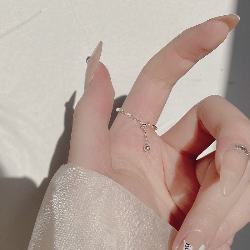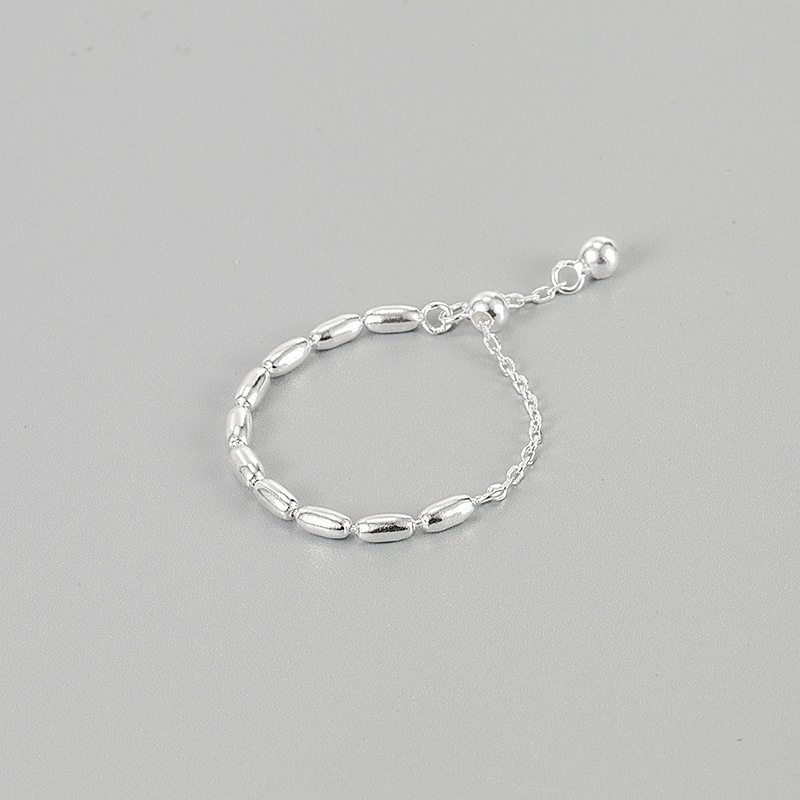 S925 Sterling Silver Millet Beaded Ring Female Korean Version Stacking Chain OBead Rice Pull-out Ring