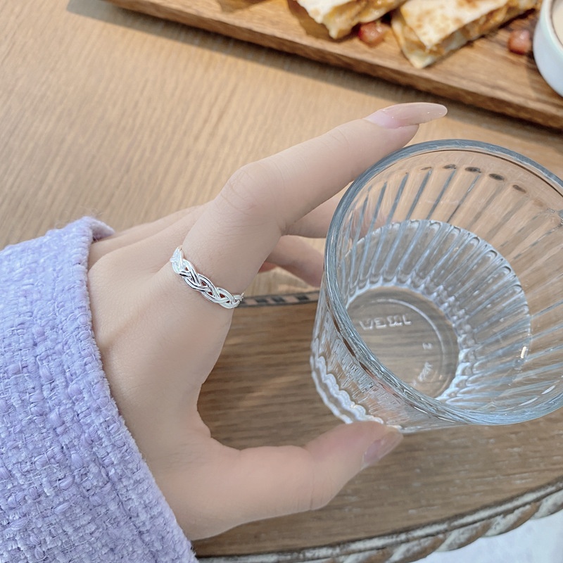 Blogger Simple Personality925 Sterling Silver Braided Line Wrapped Ring Female Open Adjustable Index Finger Ring