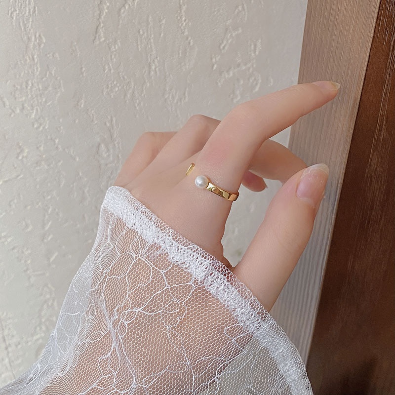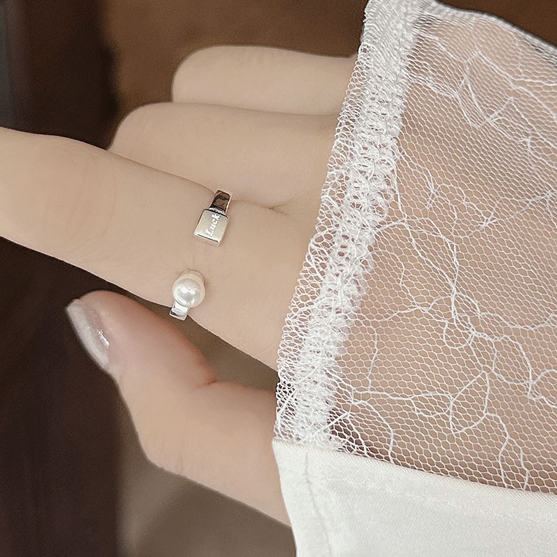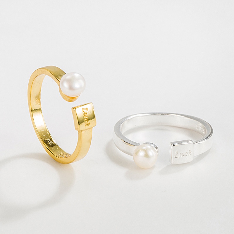 Original Design All Over S925 Sterling Silver Natural Pearl LUCKOpen Ring Female Niche Design Index Finger Ring