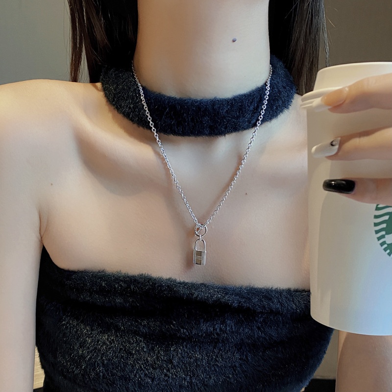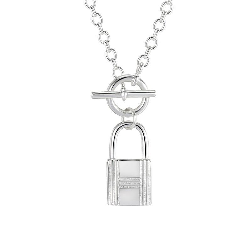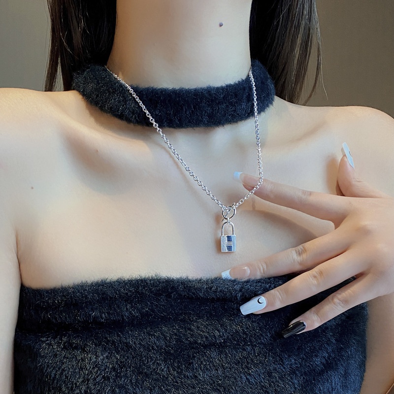 European And American Heavy Industry Style Creative S925 Sterling Silver Lock Pendant Necklace Long Xiaohongshu Recommended Clavicle Chain Female