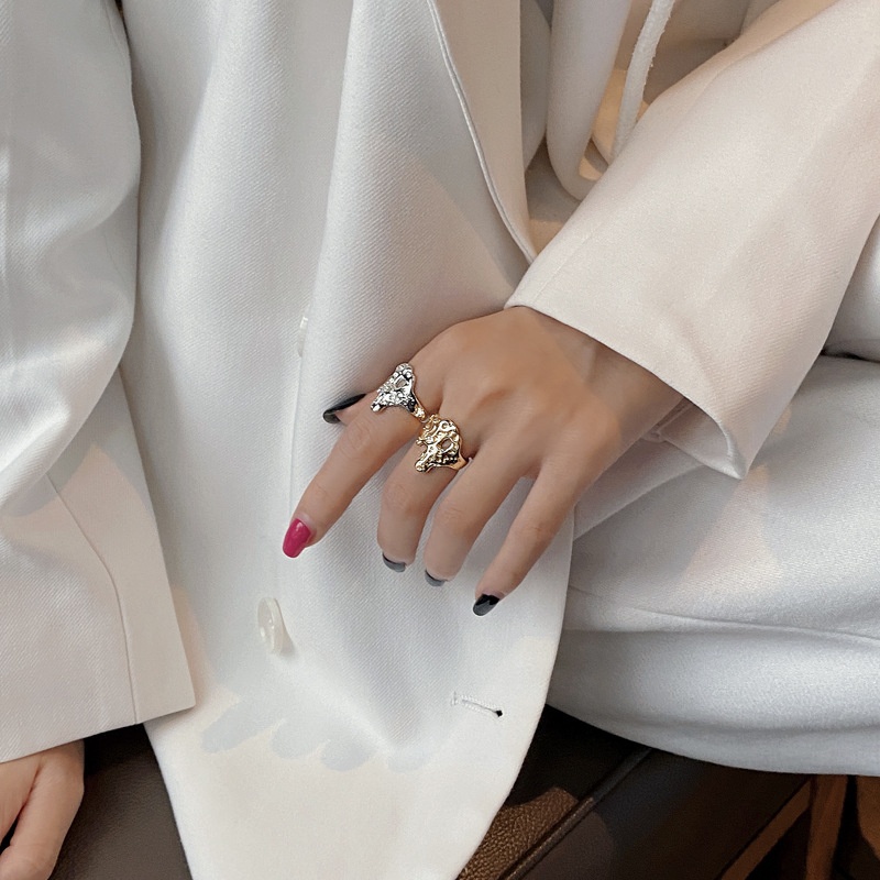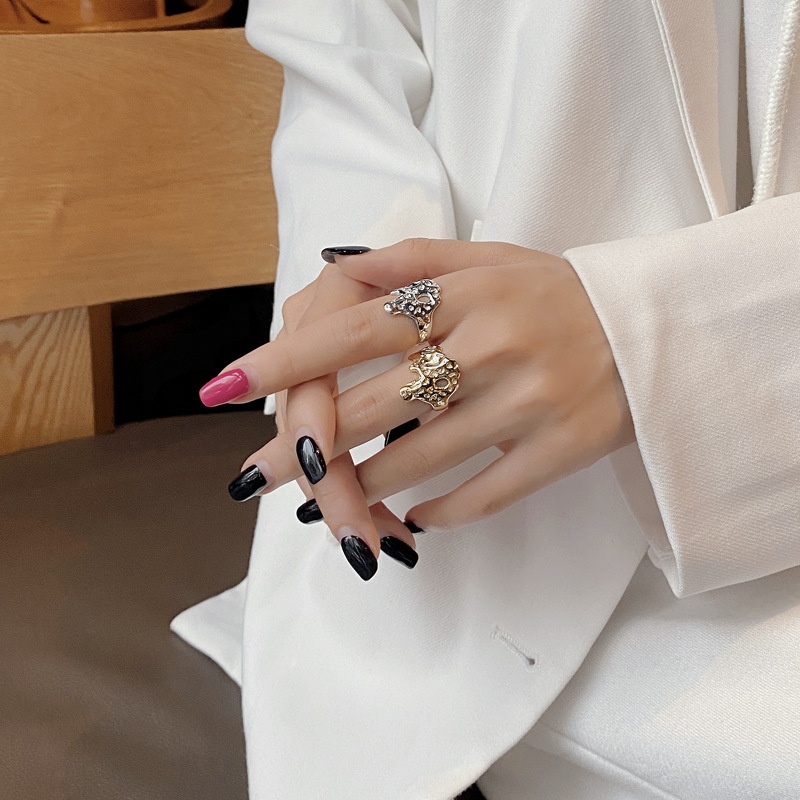 Black Phoenix Celi French Style S925 Sterling Silver Irregular Opposite Sex Hammer Pattern Ring Female Open Concave And Convex Index Finger Ring