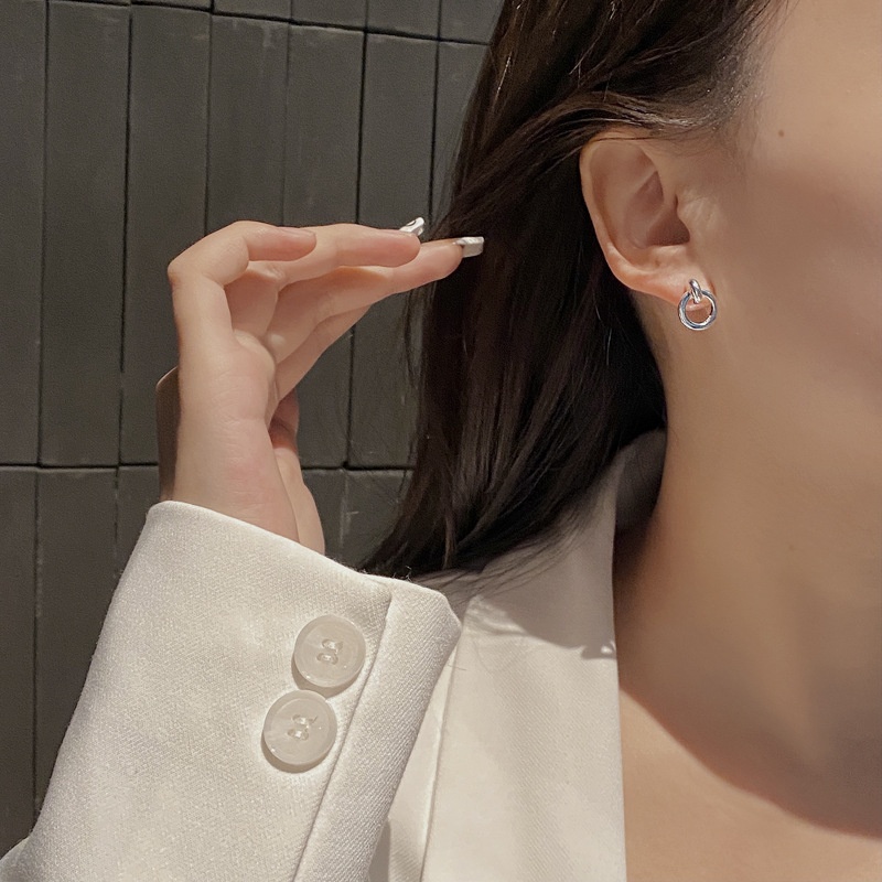 French Style Niche Winding Circle Earrings S925 Sterling Silver High-grade Ring Round Fashion Simple Earrings