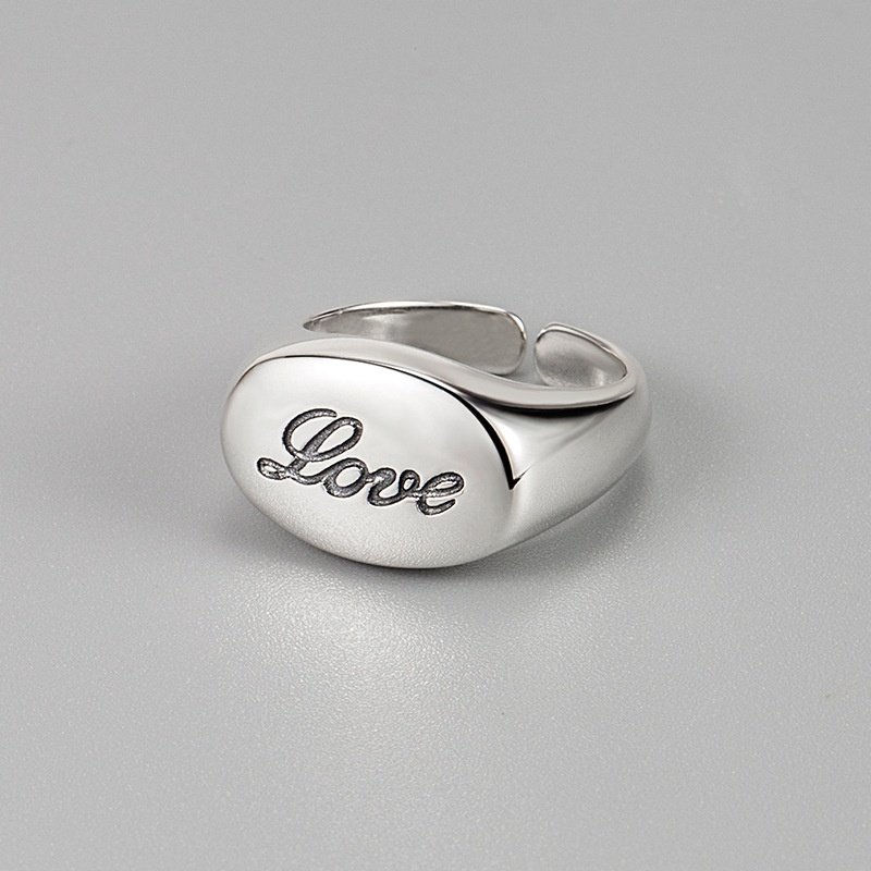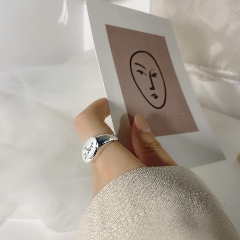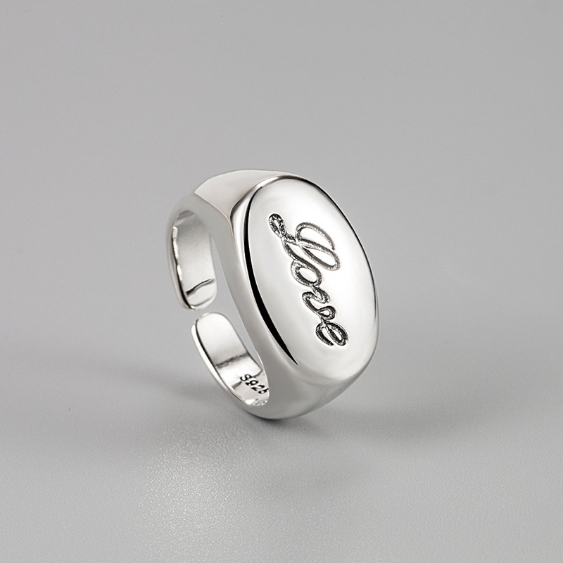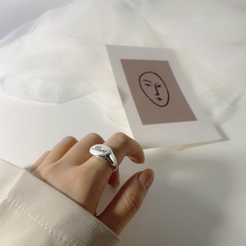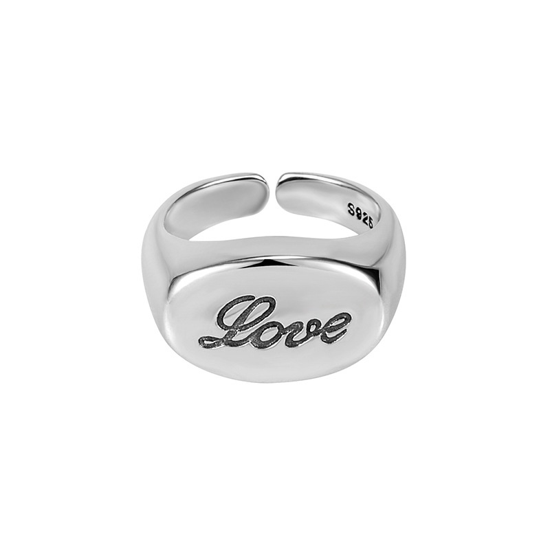 Korean Korean Retro Old S925 Sterling Silver English Letter Heavy Ring Cold Style All-match Ring Female