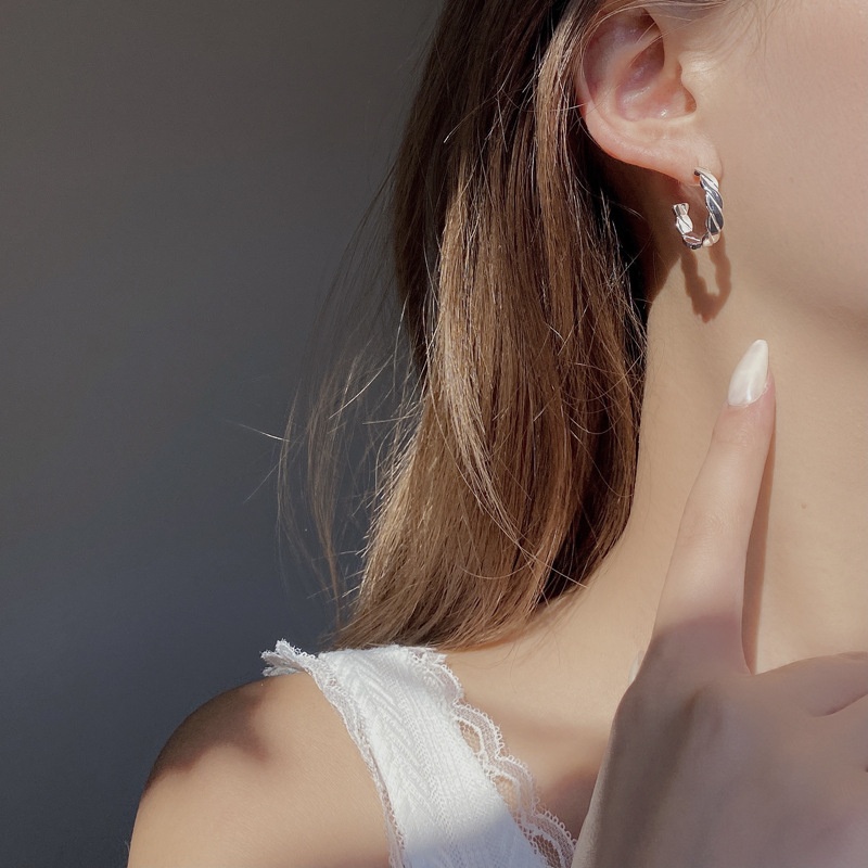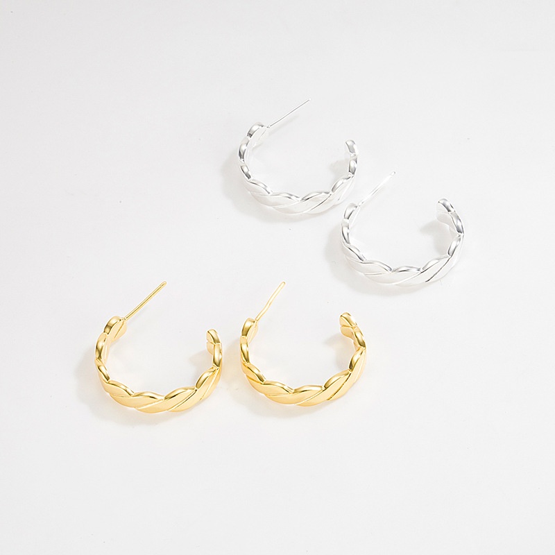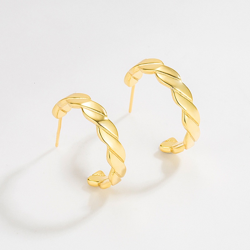 Minimalist Light Luxury French Retro Style S925 Sterling Silver Twill Earrings Plated With18k Gold Online Celebrity All-match Earrings