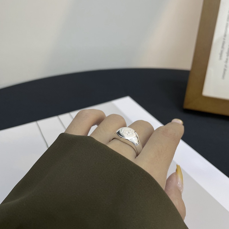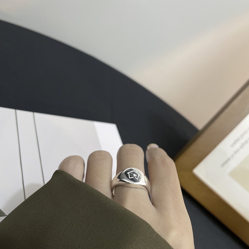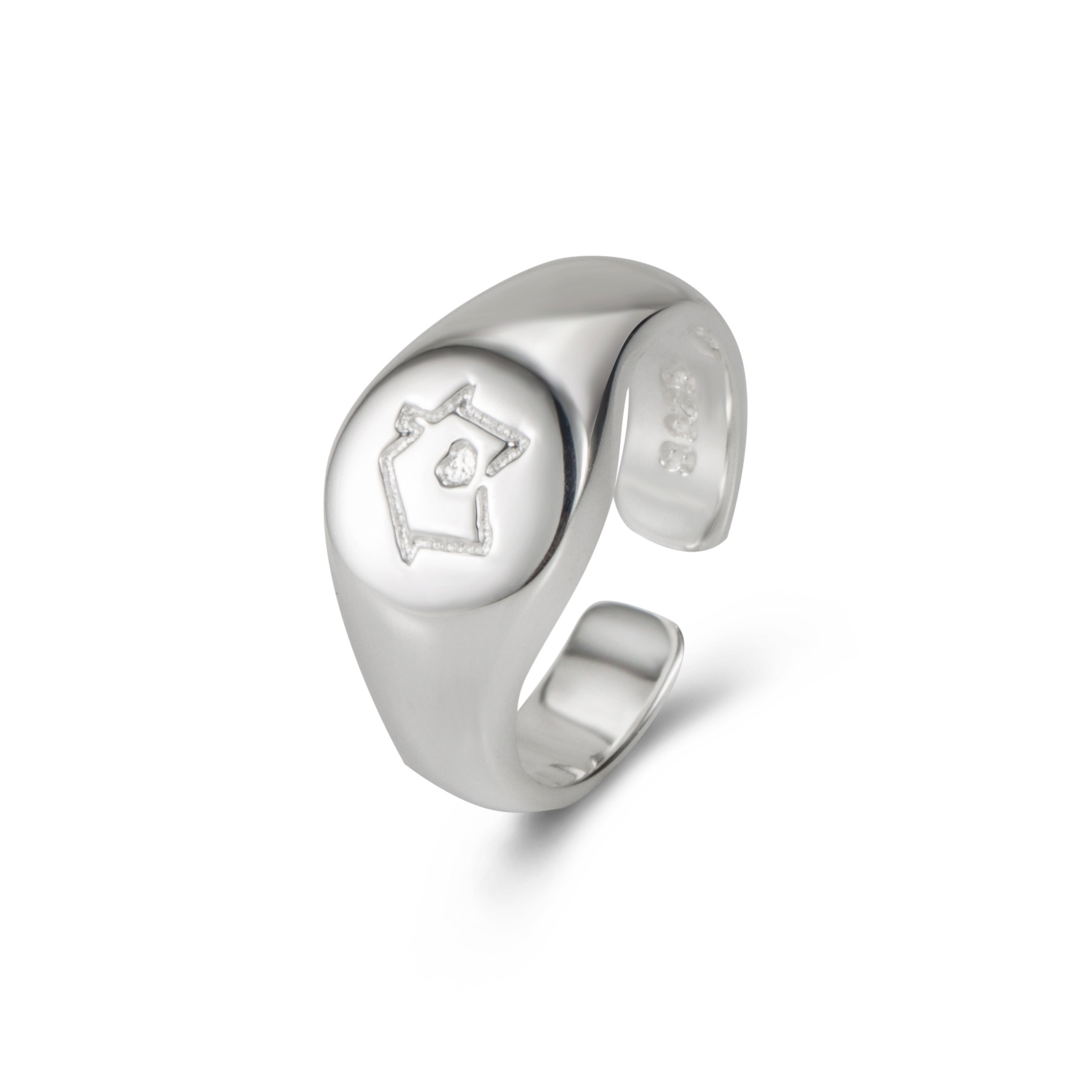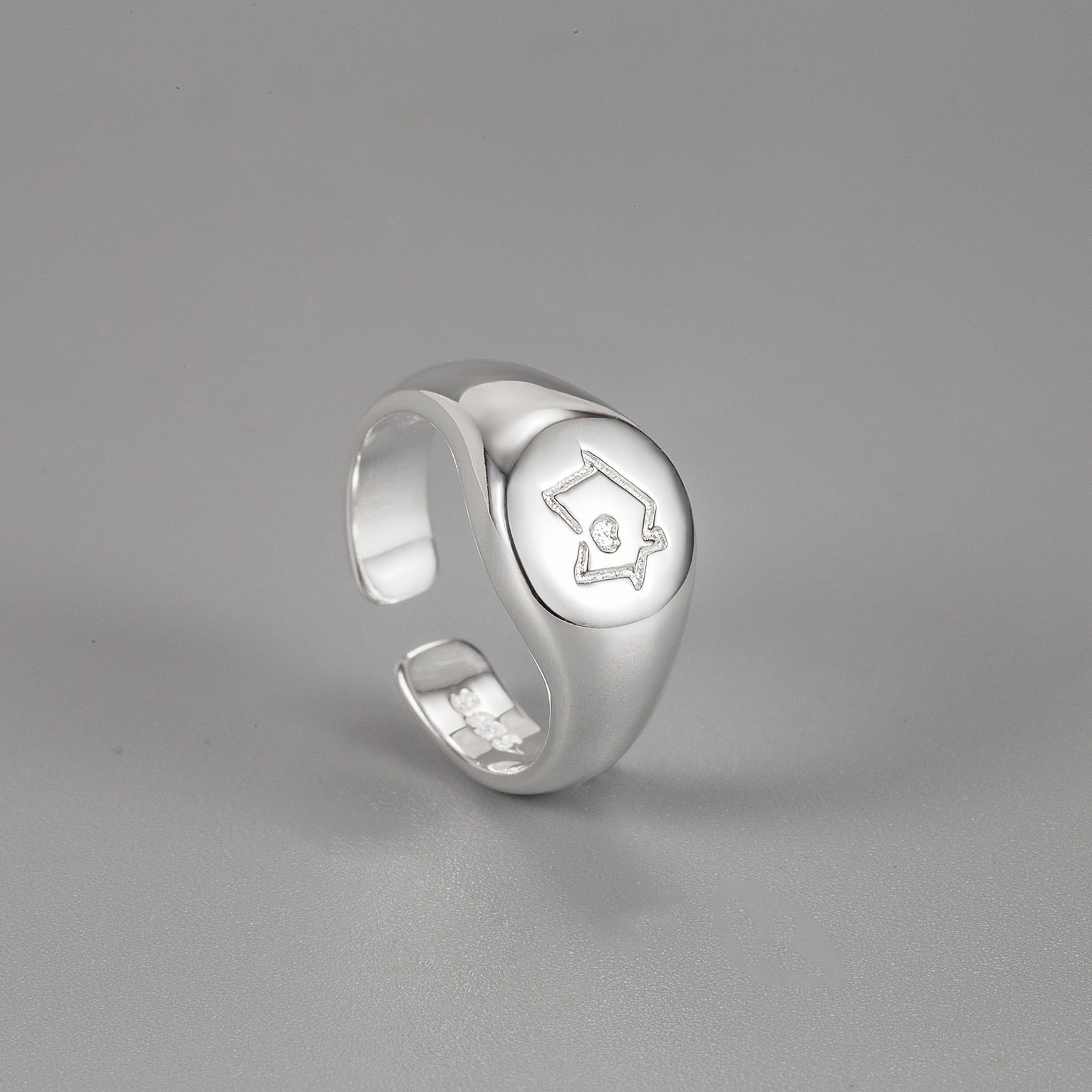 South Korea Dongdaemun925 Sterling Silver Small House Shape Ring Plain Silver Versatile Simple Open Ring
