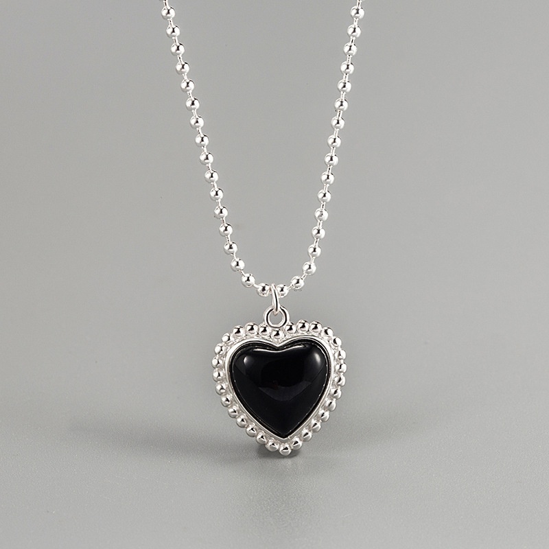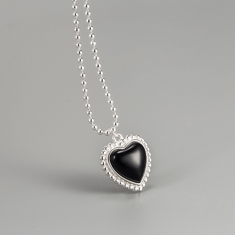 Korean Version S925 Sterling Silver Black Agate Love Necklace Design Light Luxury Temperament Versatile Clavicle Necklace Female