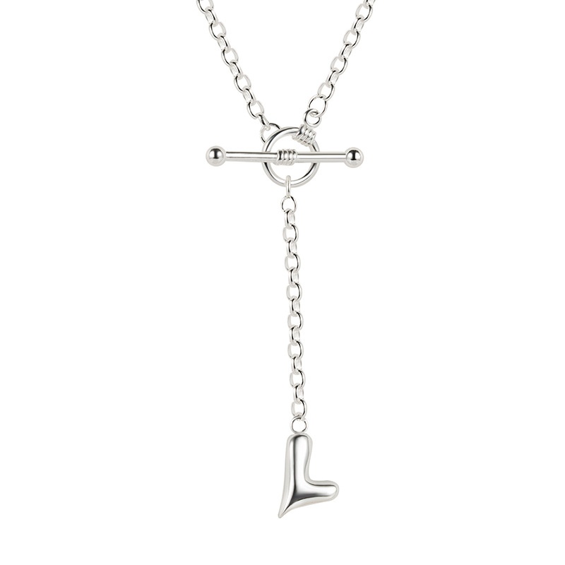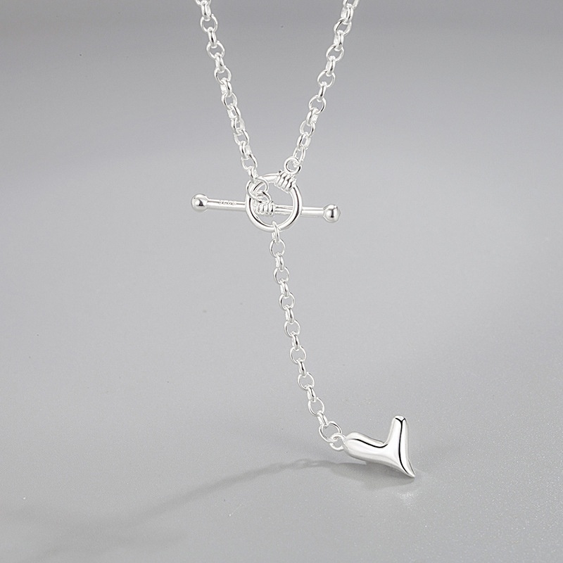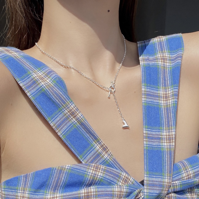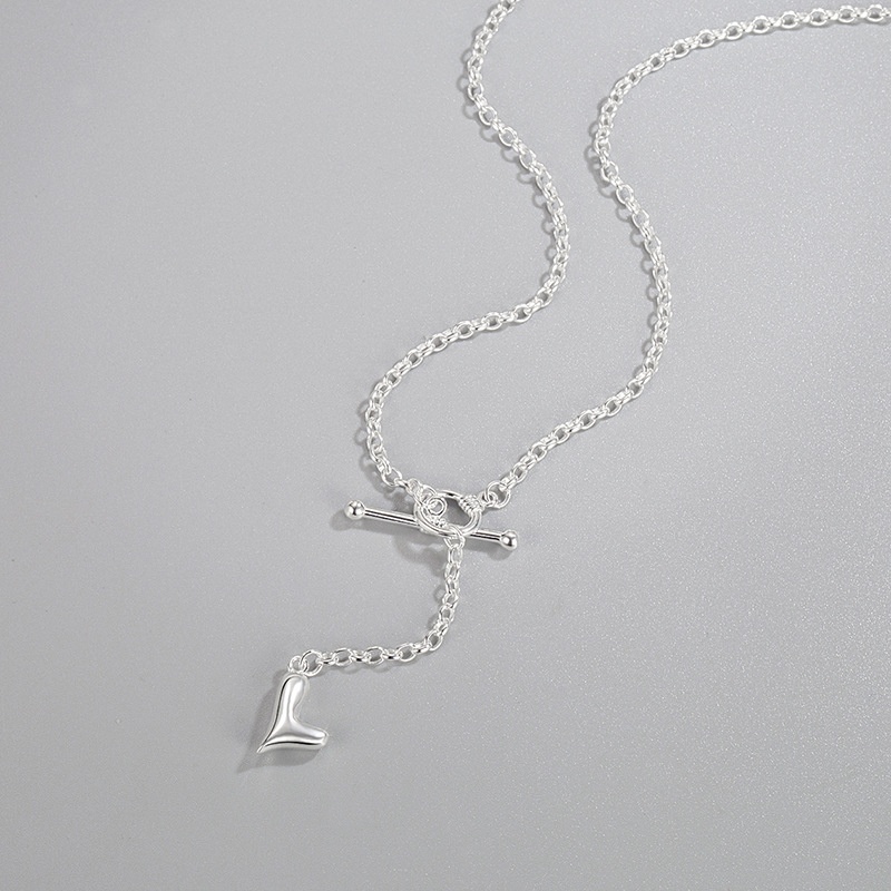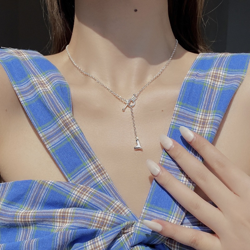 Korean Version Of Niche Simple S925 Sterling Silver Necklace Female Mini Love Heart-shaped OTBuckle Tassel Chain Clavicle Chain