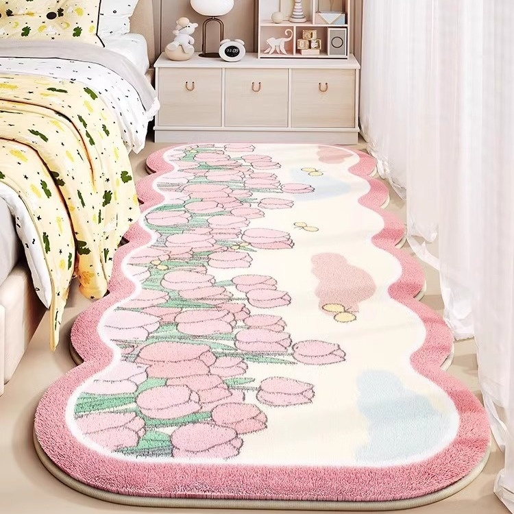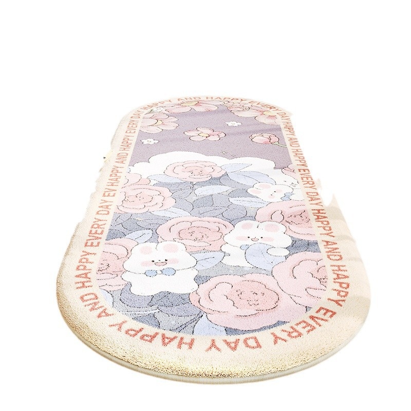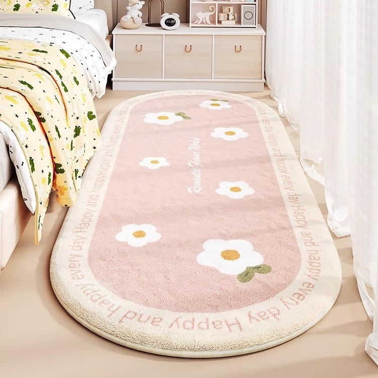 Children's Bedside Carpet Girls Bedroom Princess Style Bedside Foot Mat Bedside Bay Window Oval Non-slip Floor Mat
